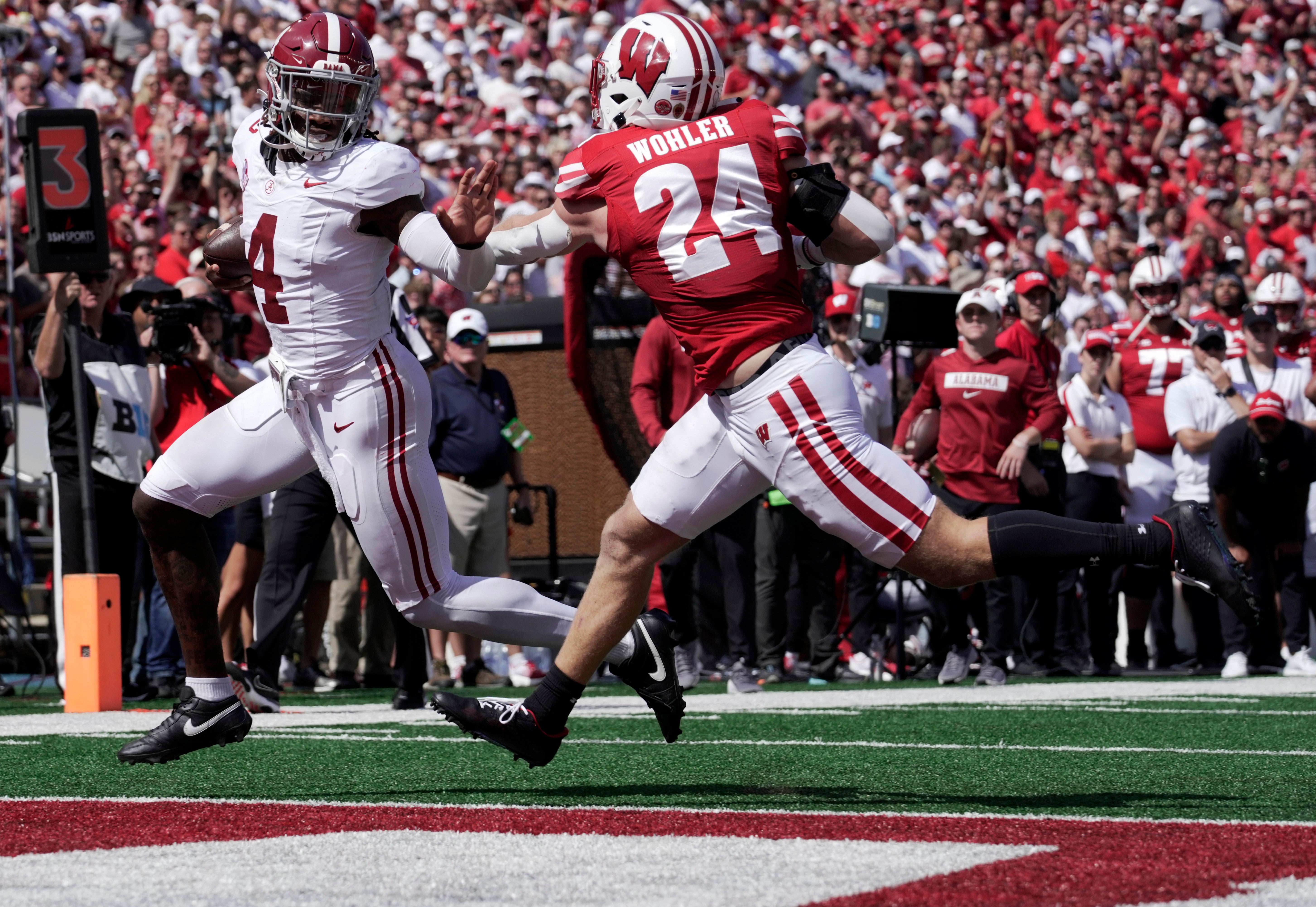 Alabama QB Jalen Milroe receives some hardware after dominating the Wisconsin Badgers
