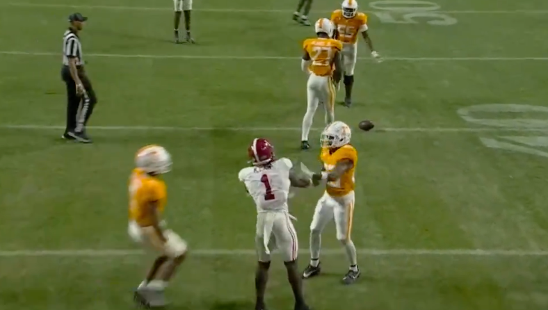 Alabama HC Kalen DeBoer reacts to key penalty in loss against Tennessee that was caused by Vols DB Boo Carter's trash talk