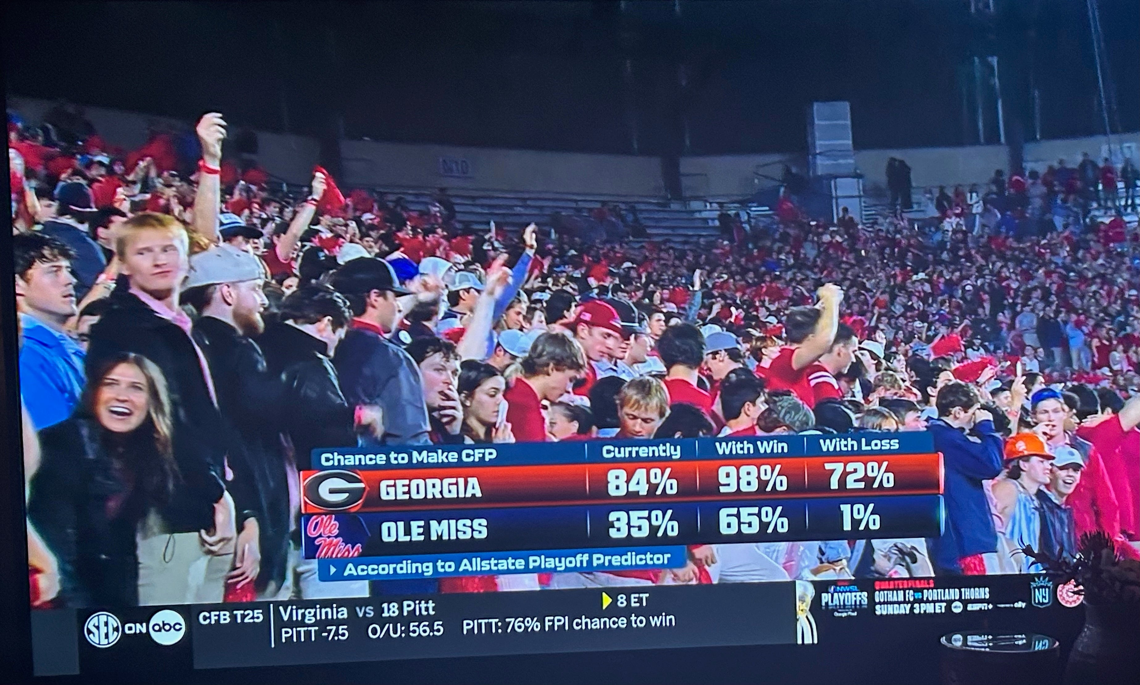 No. 2 Georgia could not pull off the win over No. 16 Ole Miss, falling 28-10 to the Rebels at Vaught Hemingway Stadium on Saturday night.  And now the Bulldogs' playoff chances could be in danger.  Georgia entered the game with an 84 percent chance to land a spot in the new 12-team playoff bracket. With […]