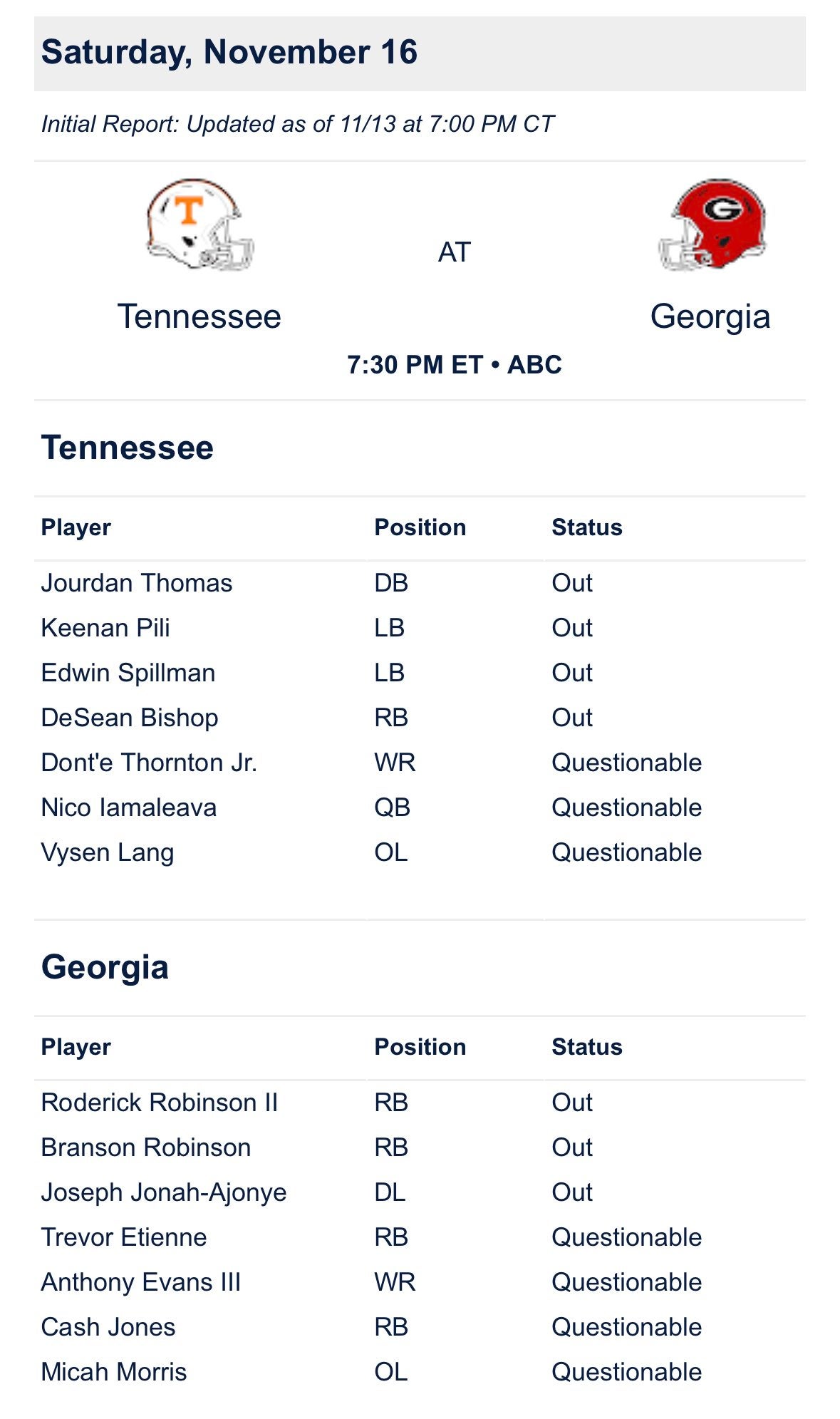 Georgia vs. Tennessee might be winner-take-all for a playoff spot