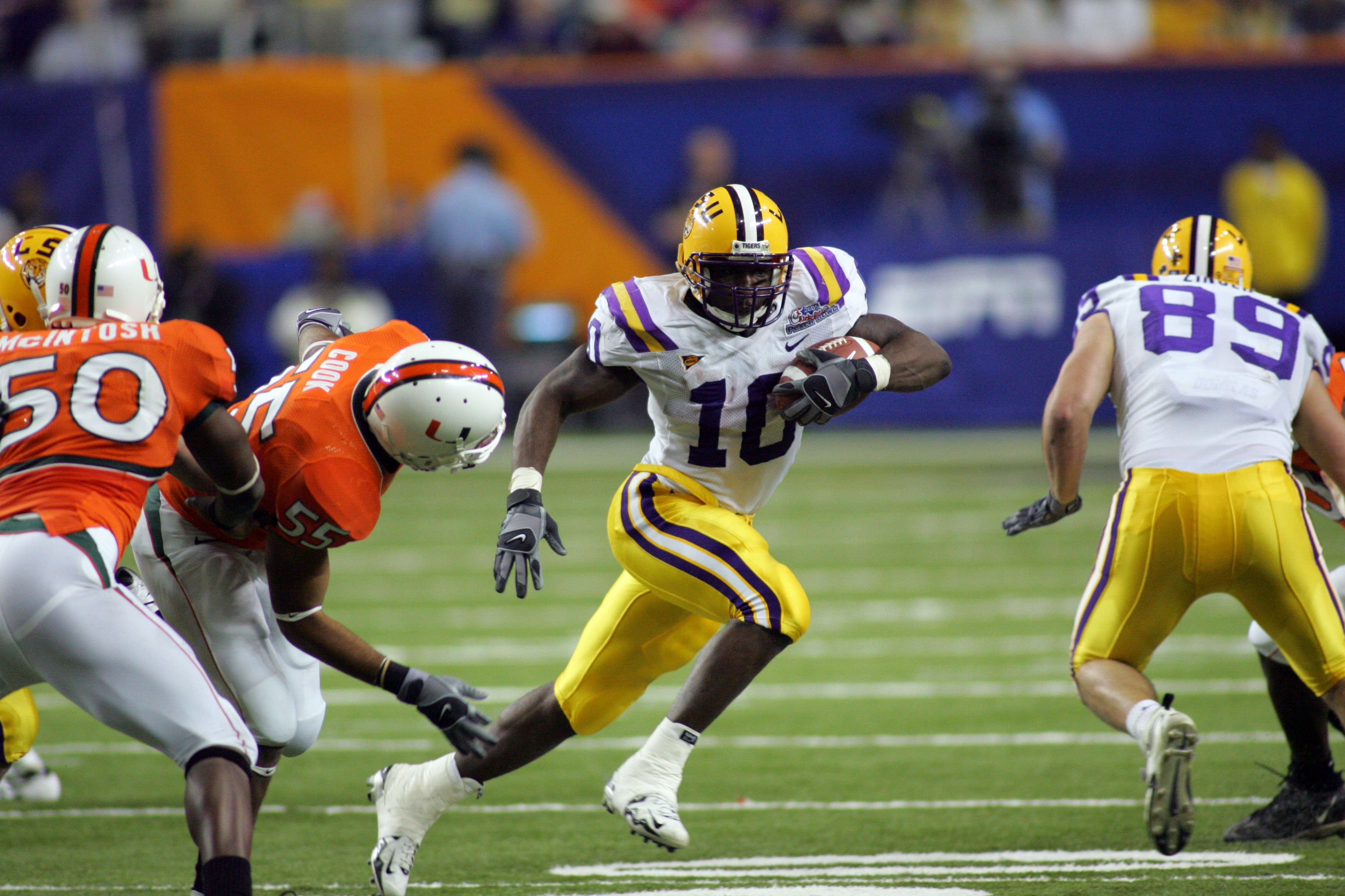 One of the main catalysts on that team, and for his entire career, was star running back Joseph Addai. During a five-year career, the talented runner managed to rush for 2,576 and 18 touchdowns, while adding another 66 receptions for 641 yards and six scores as a receiver. He was a dynamic all purpose player for the Tiger offense.