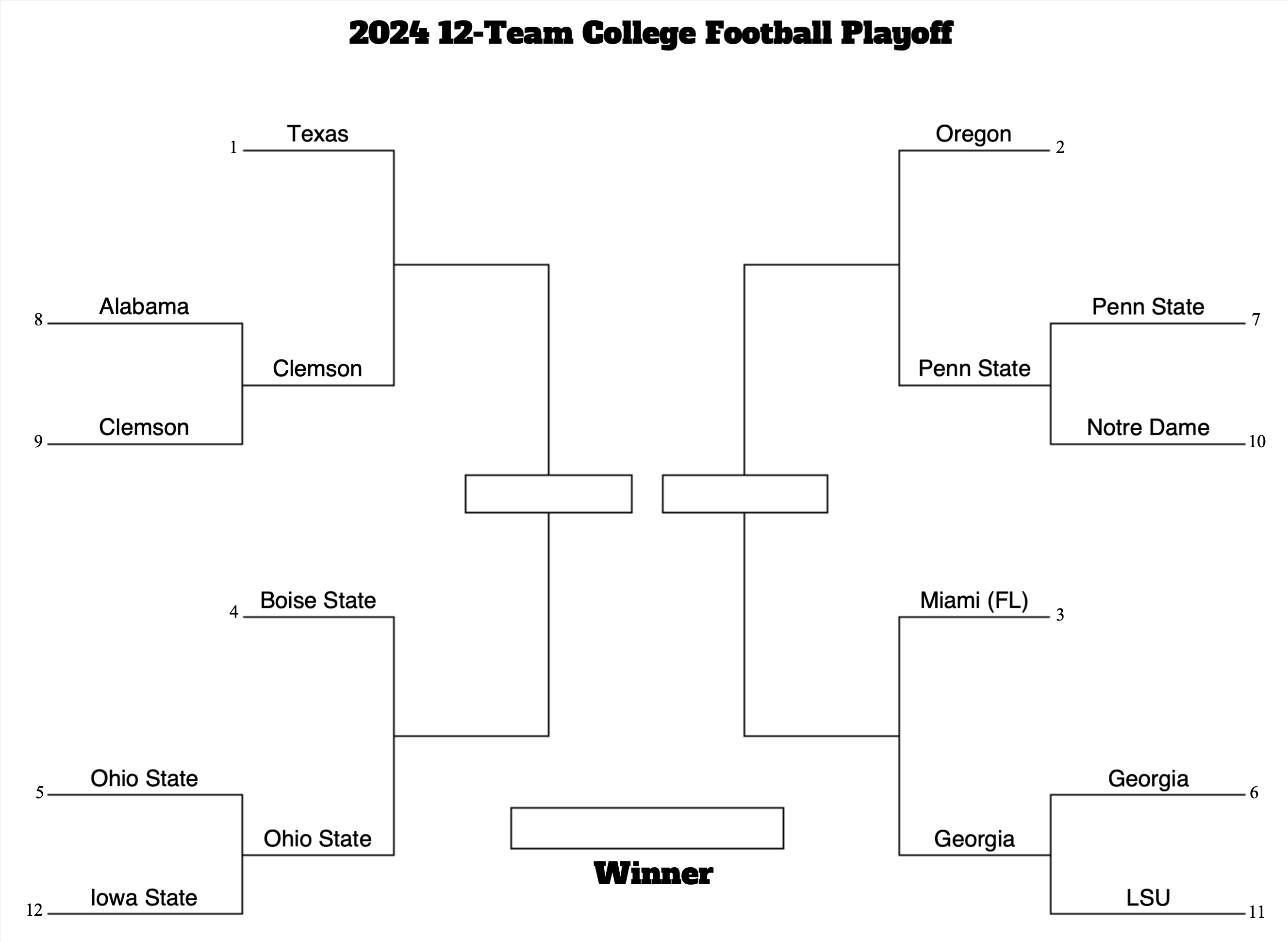 With this new format in mind, it's time to share the A to Z Sports Week 8 predictions for the 2024 12-Team College Football Playoff, breaking down every game in each round based on a heavily data-driven projection of the season.