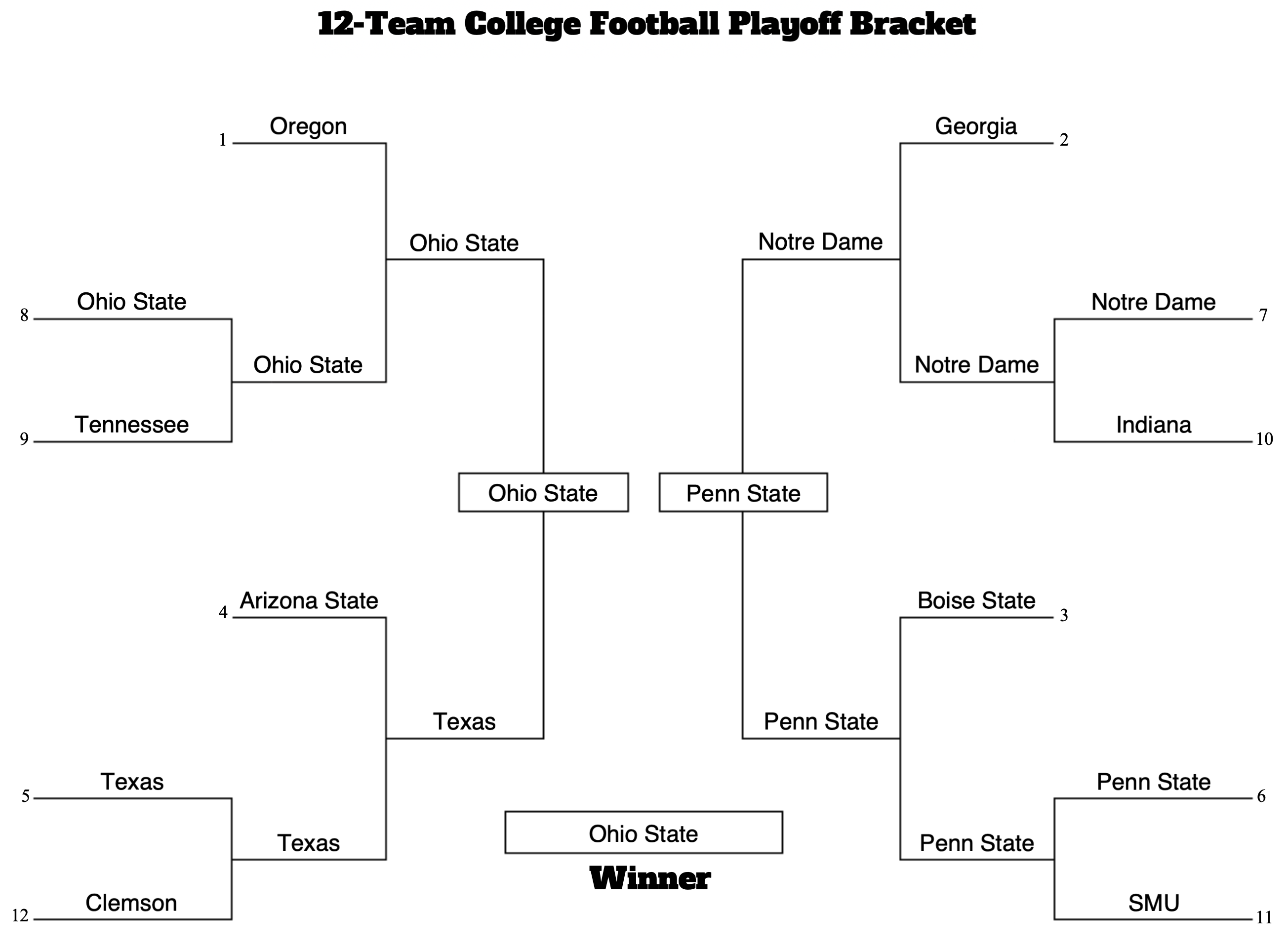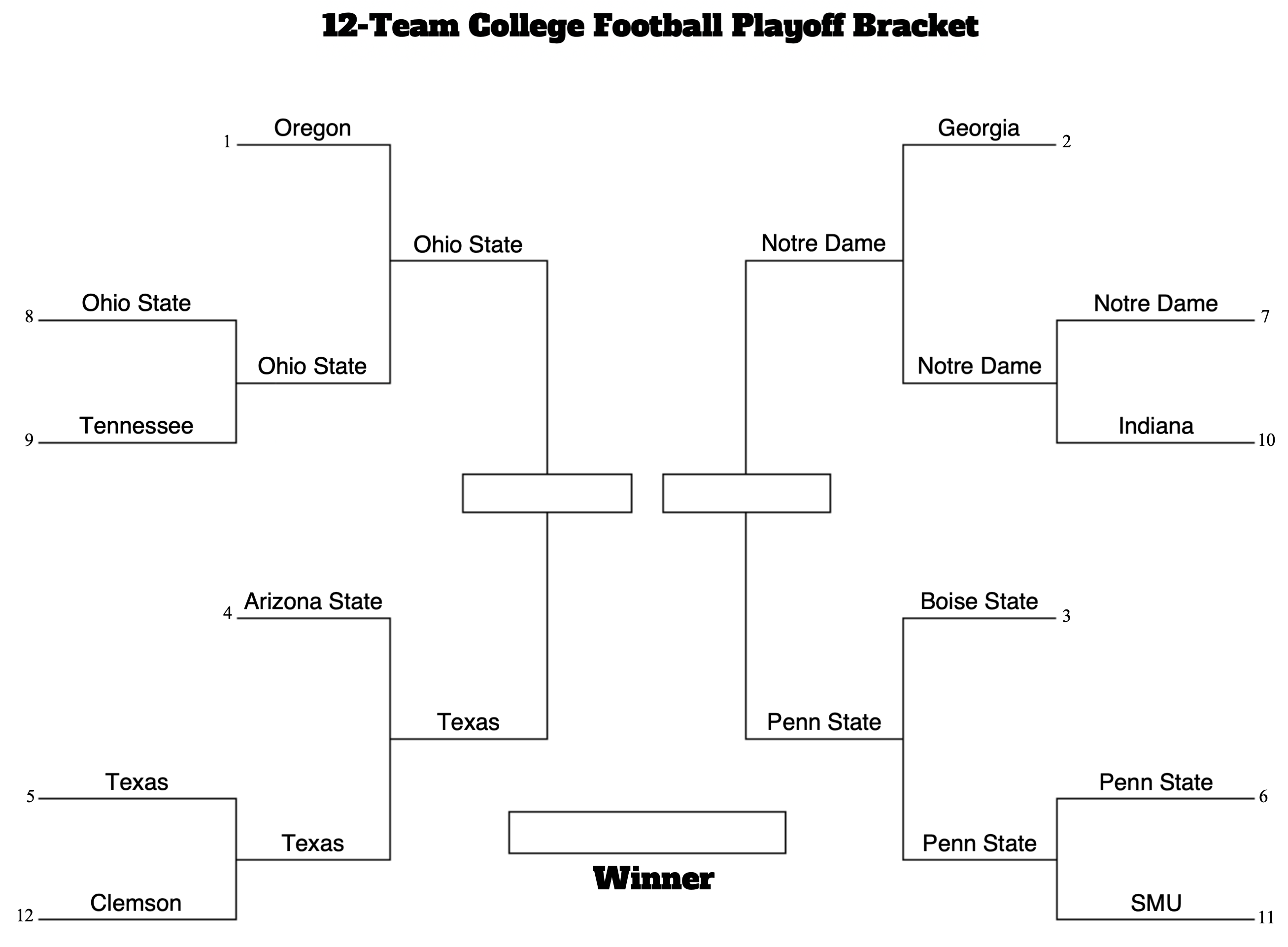 Penn State and Notre Dame certainly weren't the betting favorites to face off in the Orange Bowl semifinal game, but here we are. Why would these two end up in the Orange Bowl (Jan. 9, 7:30pm ET) specifically? In this scenario Texas would be the highest remaining seed in the bracket and would quite likely choose to play in the Cotton Bowl since it's in Dallas.