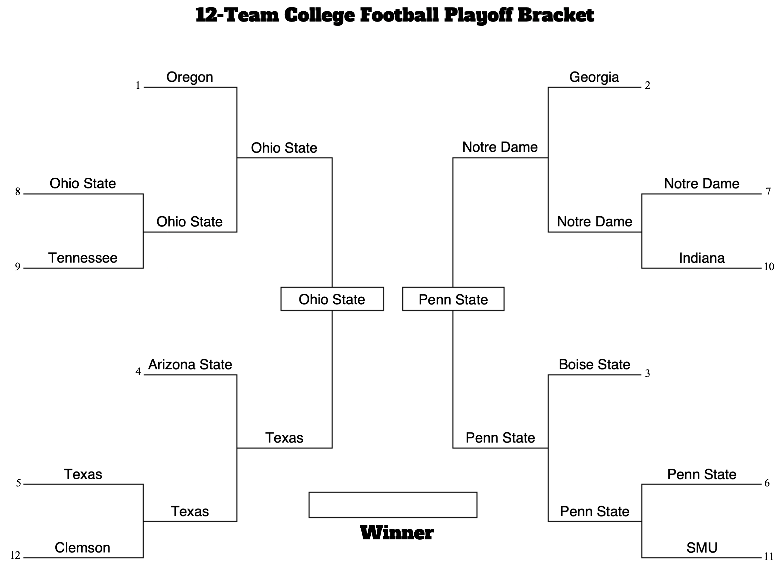 The first and second rounds of the 12-Team College Football Playoff are already behind us. Only four teams remain: Ohio State, Texas, Notre Dame, and Penn State. Which powerhouse brand of a college football program will win the national championship? Today, we'll dive into the data and predict a winner.