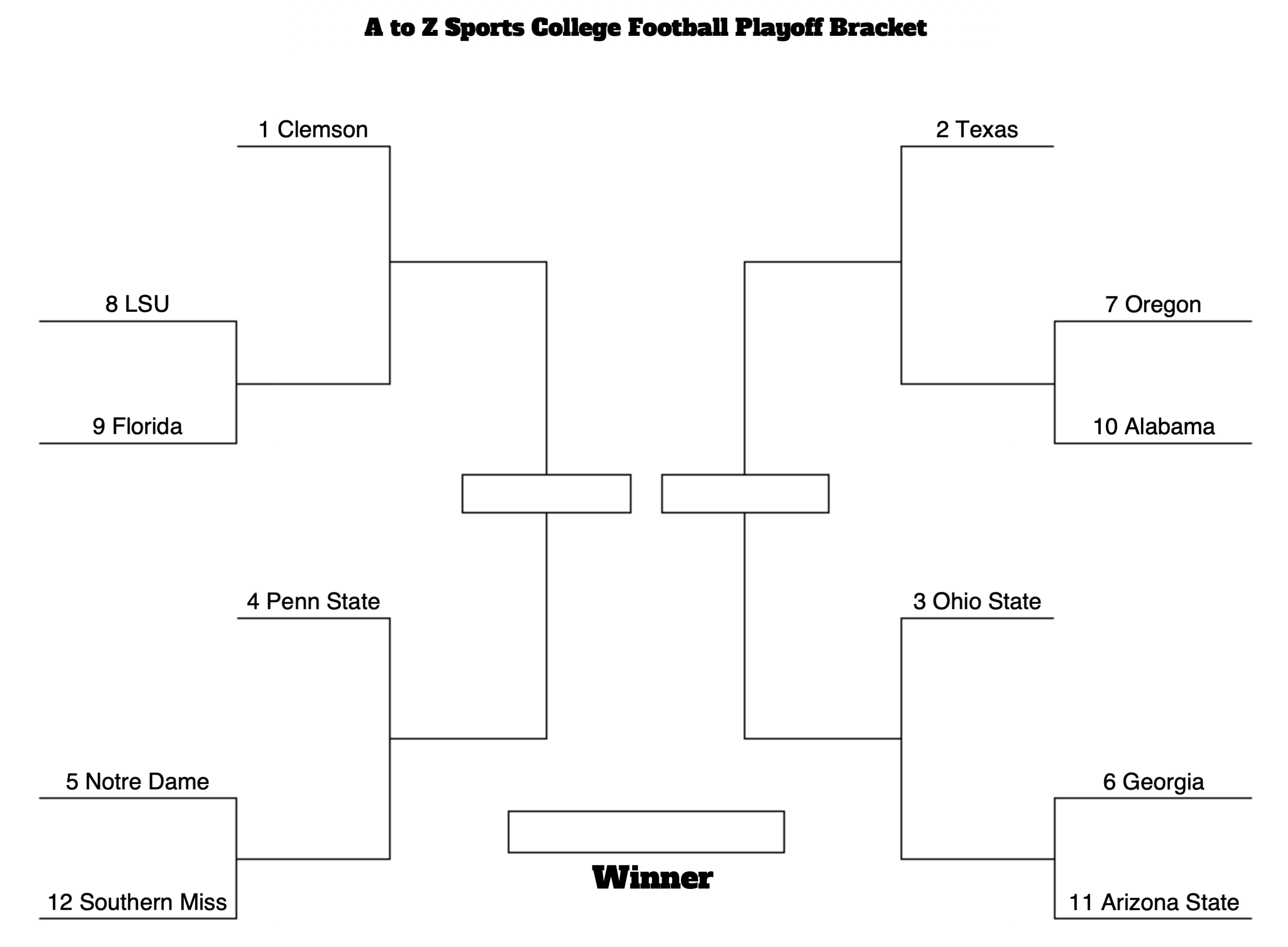 12-Team College Football Playoff Bracket Prediction via A to Z Sports CFB Team