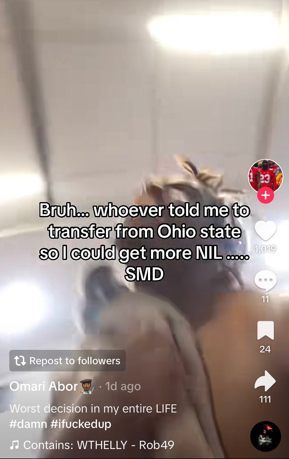 One former Buckeye took to TikTok to admit that he didn’t make the right decision to leave the Buckeyes, which is something you don’t see often.