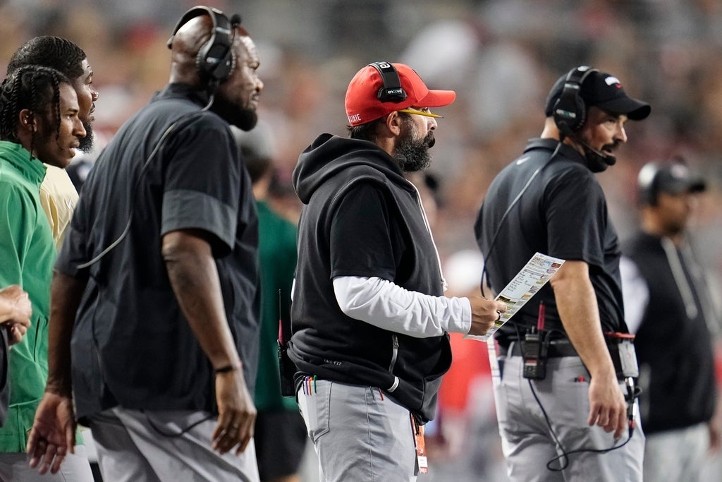 “He’s very much—a little bit almost like Kyler Murray,” Patricia said Tuesday. “That first-step quickness that he has and his ability to get to top speed, it’s explosive. It’s fast. He’s quick. He gets out of the pocket. He’s got a really strong, live arm. This thing can go downfield. They’ve got good players to get the ball to. That’s gonna be a huge challenge for us. Even when you think—you know, you’re watching tape—you think you’ve kind of got him bottled up, he can get out. That reminds me a lot, like I said, of Kyler Murray.”