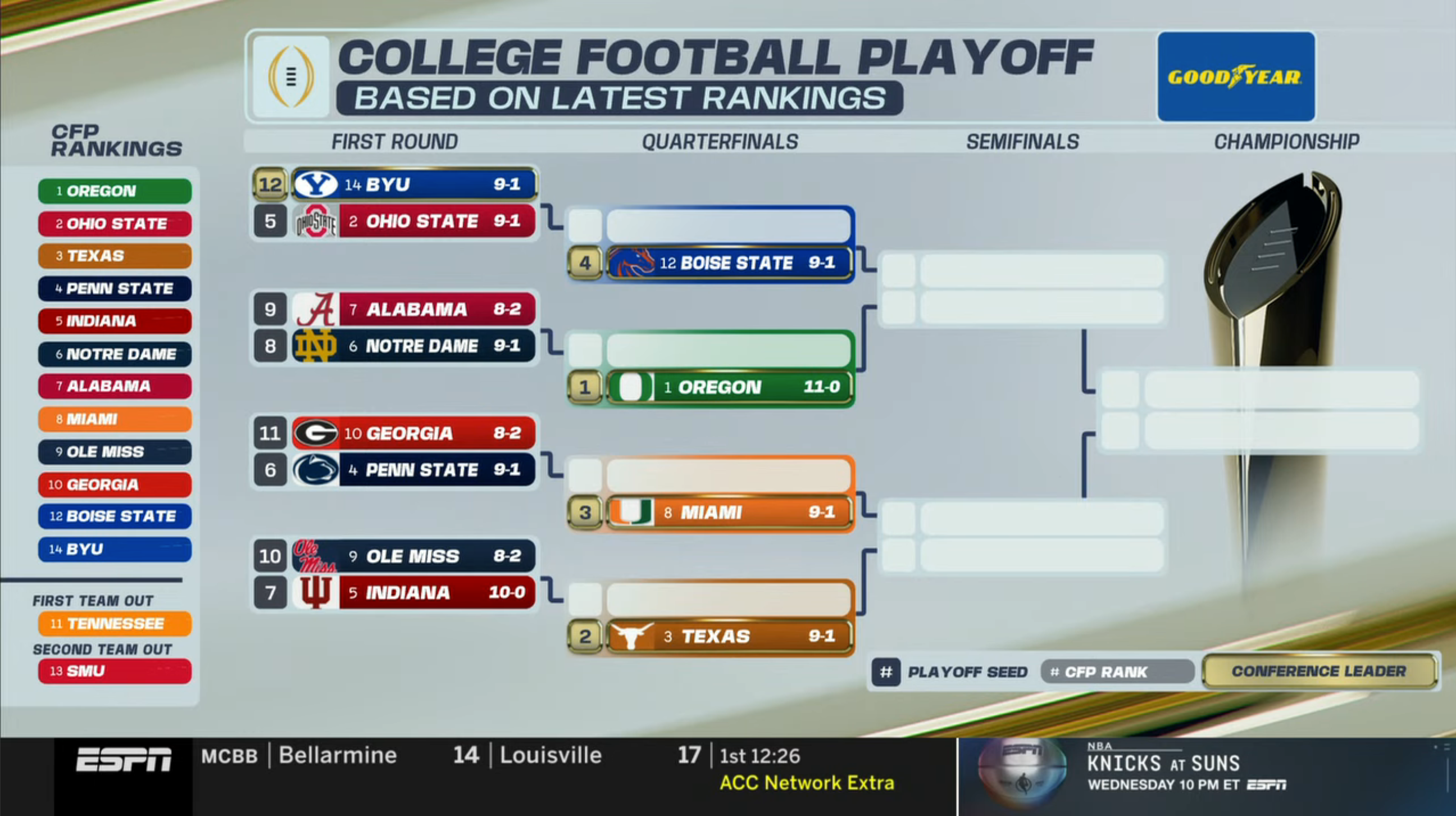 For the record, Texas remained third overall in Tuesday’s updated CFP rankings. If the season ended today, the Horns would be seeded second in the bracket. Texas would play the winner of the No. 7 Indiana and No. 10 Ole Miss.