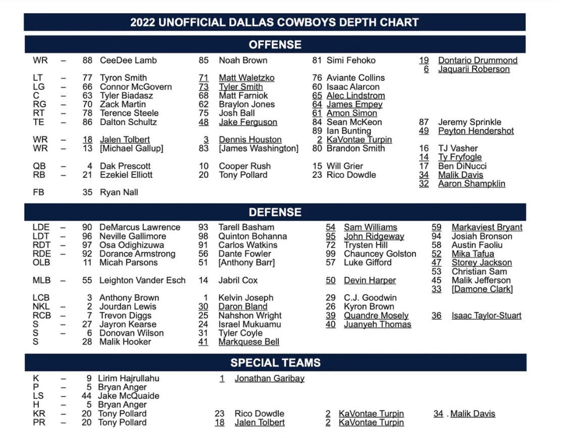 - Michael Gallup is still listed among the starting WRs, alongside CeeDee Lamb and Jalen Tolbert.