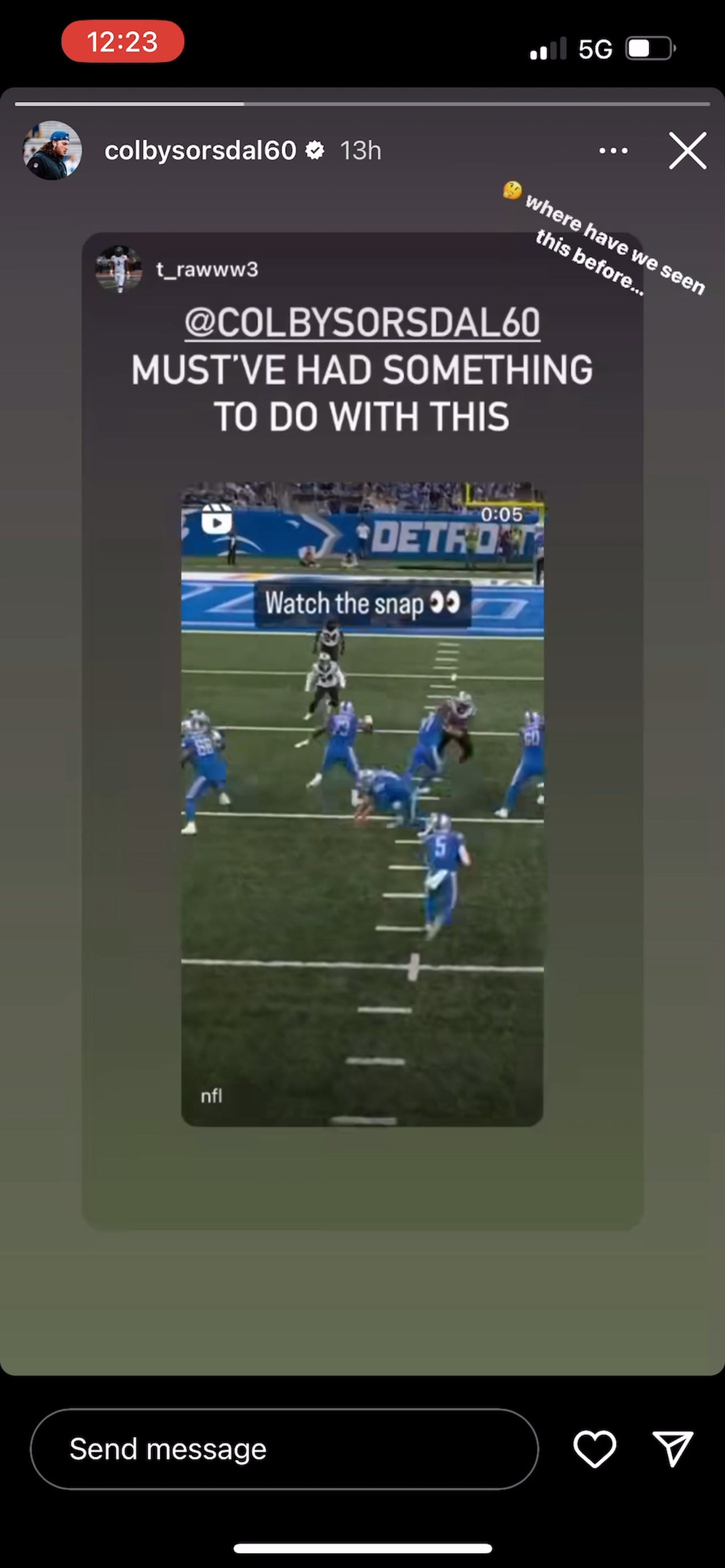 Lions Offensive Coordinator Ben Johnson was really in his bag on this one. Turns out that he may have actually selected this play out of someone else's bag. Was it Kyle Shanahan or Sean McVay? No, it was rookie offensive lineman Colby Sorsdal.