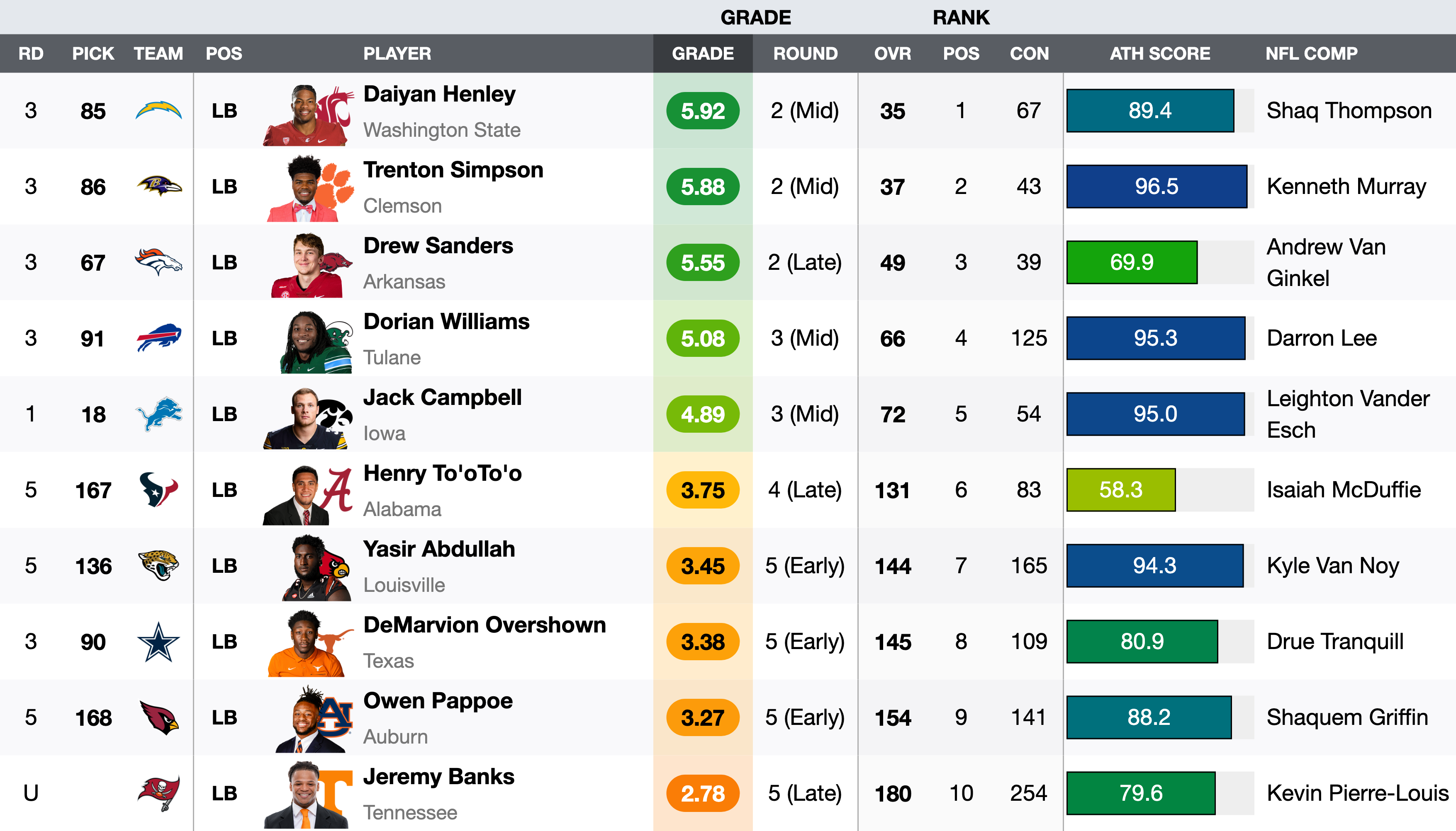 The Chargers drafted linebacker Daiyan Henley in the third round of this year's draft, and he held the top spot in my linebacker rankings. While the linebacker class was relatively weak, he stood out as one of the few off-ball linebackers I believed had the potential to start as a rookie.