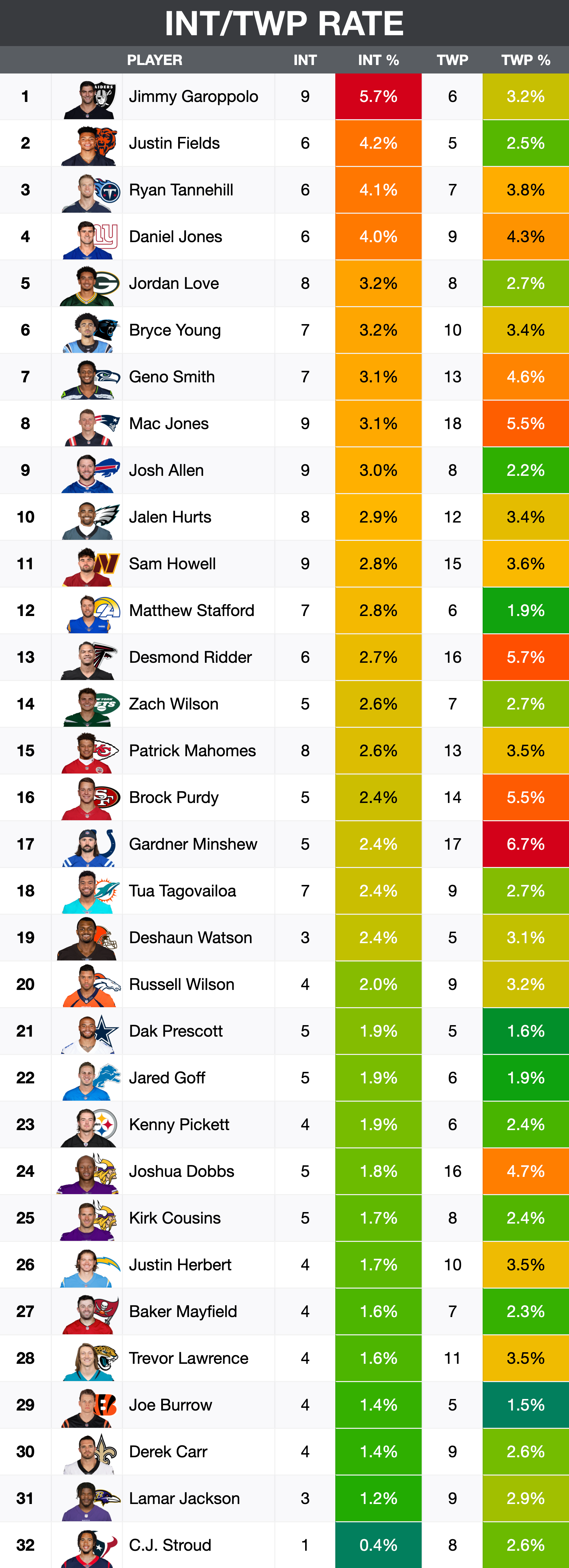 Sack responsibility often lies with a combination of factors including offensive line performance and Howell's own decision-making. Howell's interception rate is not the lowest, but it is balanced by his high volume of attempts and big-time throws. The interceptions can typically be categorized into issues with accuracy, processing speed, and over-aggressiveness. While not tricked by coverage, Howell sometimes needs to improve his processing speed and learn when to be conservative to reduce turnovers.
