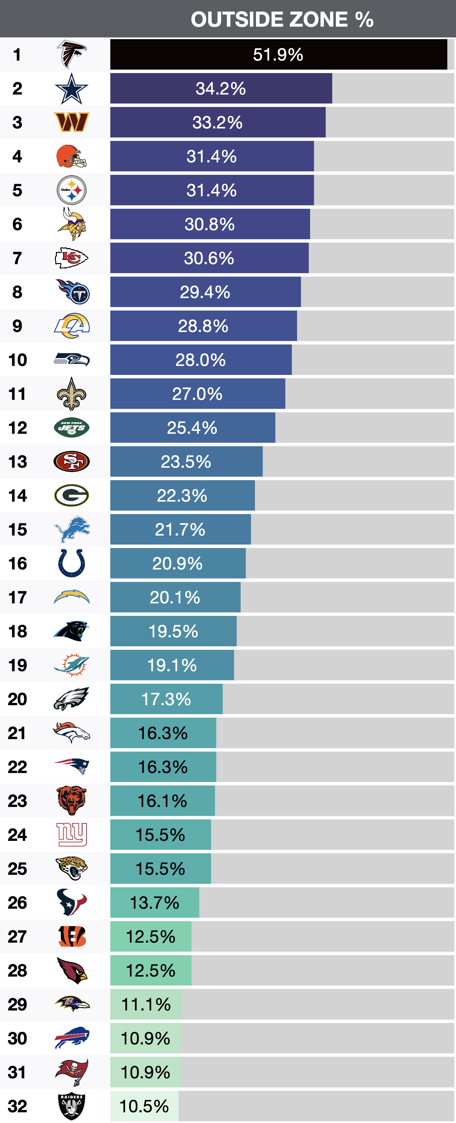 His proficiency in this area is maximized when he's on the move, whether as a puller or in outside zone runs. Despite the Buccaneers' lower usage of outside zone plays in the previous season, it's likely that they'll incorporate it more frequently this year, considering the preseason trends.