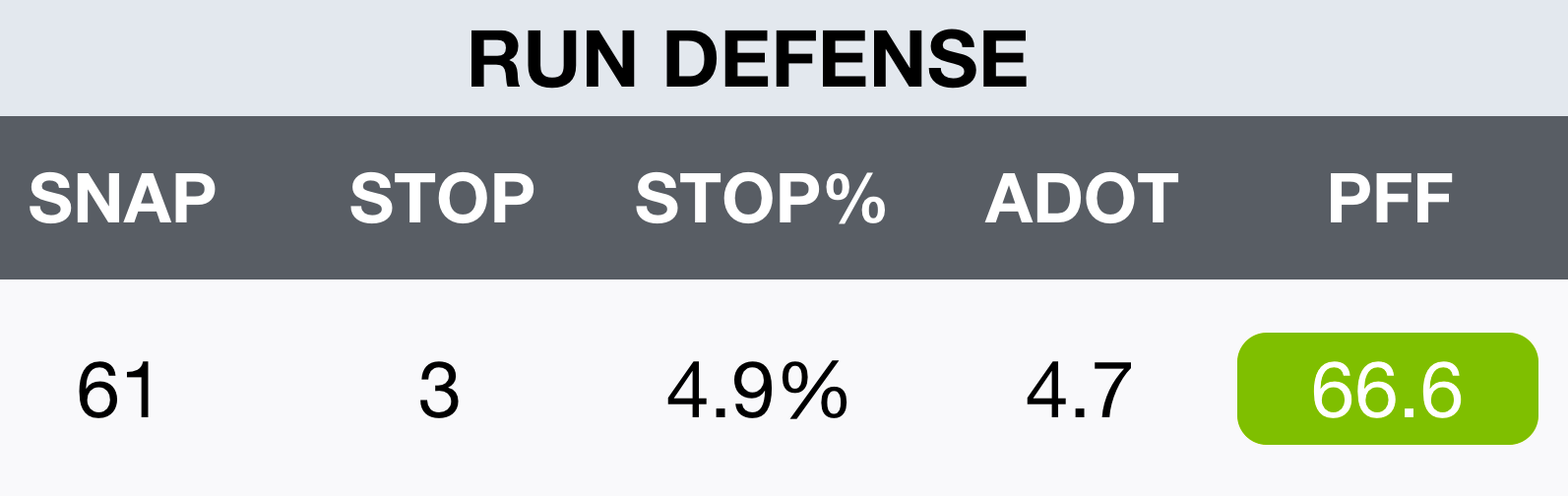 He's played 107 snaps and he's been one of the few bright spots for the Vikings defense. Pace has 14 tackles, four pressures and a sack. He also has an 85.2 PFF grade.
