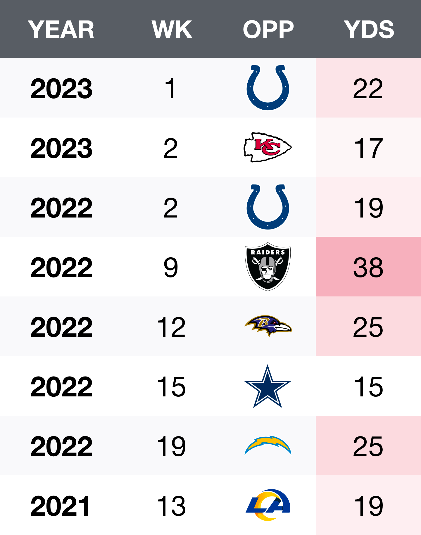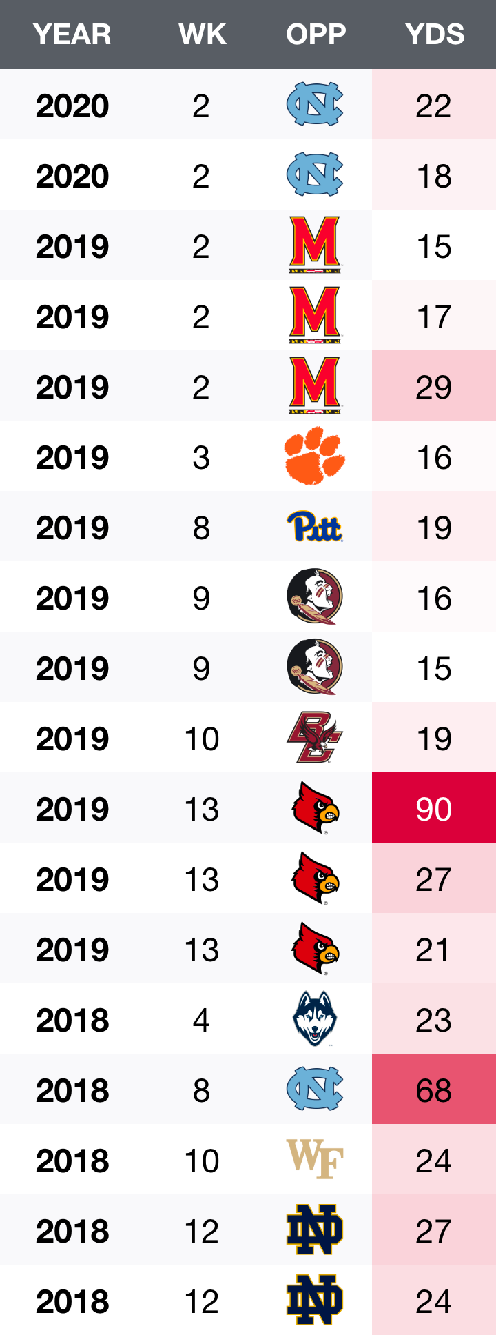 And going through his tape for this video, I would watch entire games where Andre Cisco didn't make an impact, not because of anything he did, just because the quarterback didn't throw his way. But when he does get those opportunities, he's definitely someone that makes his presence felt. And then he hasn't given up nearly as many big plays as he did in College. I mentioned he gave up 18 receptions of 15 or more yards at Syracuse.
