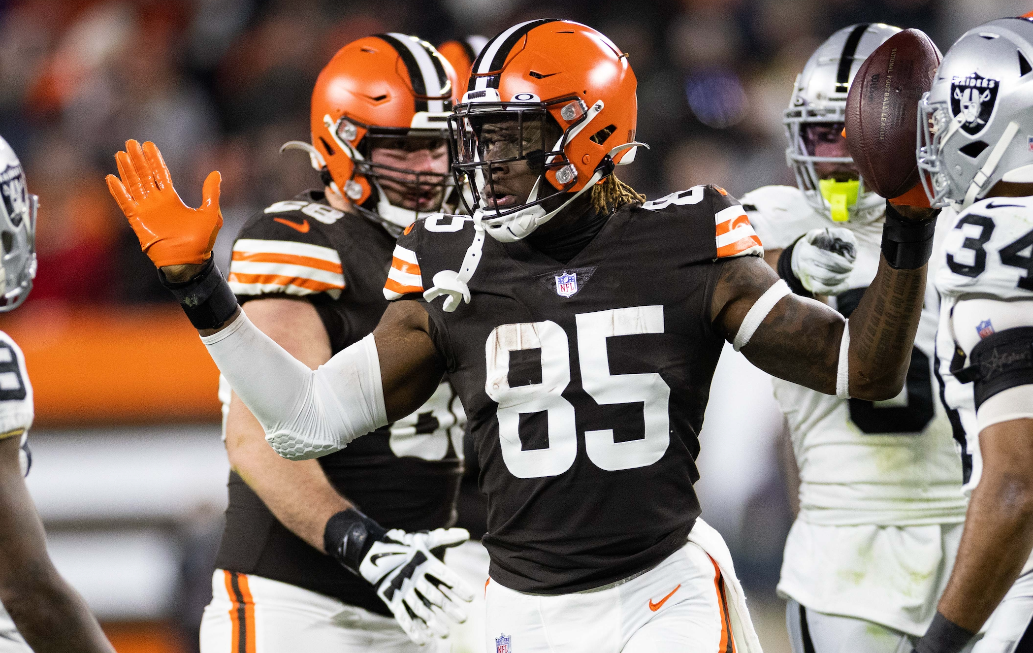 "I don't think this guy was ever used right in his four years as a Cleveland Brown and that's David Njoku. I loved this kid coming out of Miami. And he was young. He was 20 years old when he was drafted. We're talking about a guy, he's Jonnu's size….the measurables are there I just don't think he was ever used correctly (in Cleveland)."