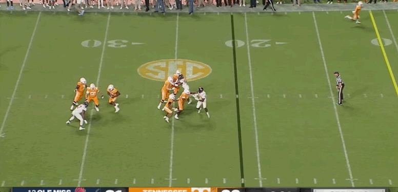 At the end of Tennessee's loss to Ole Miss, backup quarterback Joe Milton, who was forced into the game due to an injury to starter Hendon Hooker on the game's final drive, made an unwise play that ended the Vols' chance at a come-from-behind win. With no time left on the clock, Milton ran out of bounds, ending the game and giving Ole Miss the win.