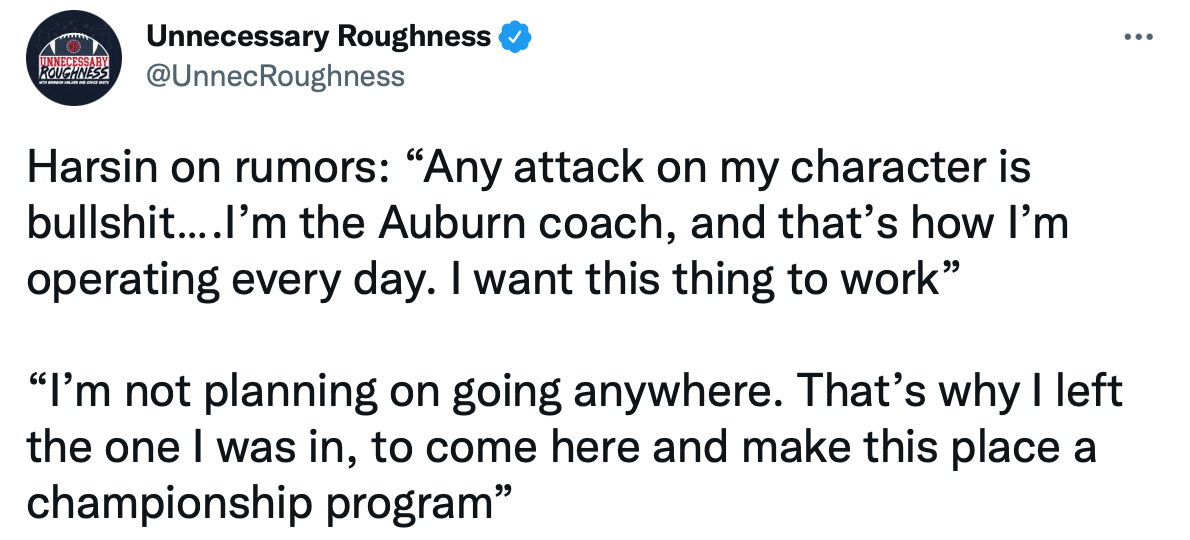 People at Auburn, however, want to push Harsin out — apparently by any means necessary. And possibly avoid paying his buyout (which is around $17 million according to AL.com).