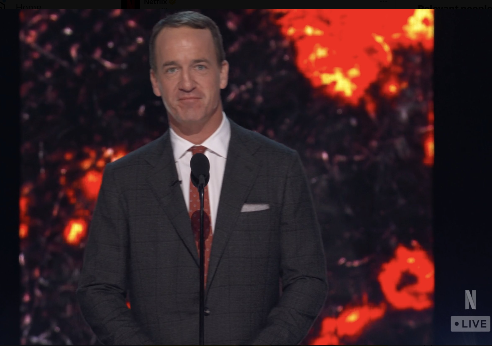 "Honestly, it is great to be here with a bunch of people sitting around talking smack about Tom Brady. Or as we call that in the Manning family: Thanksgiving. True story, after spending several Thanksgivings with my parents, my kids now excuse themselves to use the bathroom by saying 'I have to go take a Brady.'