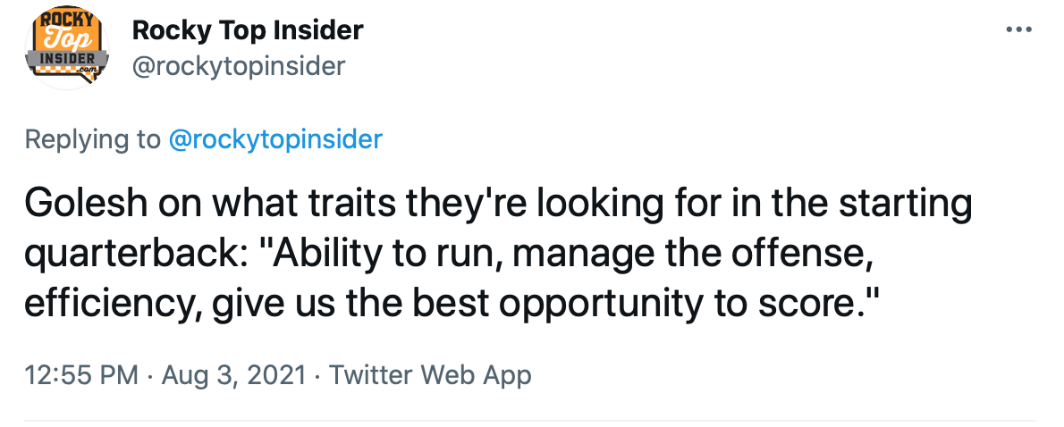 Golesh also pointed out the specific traits that he's looking for in a quarterback.