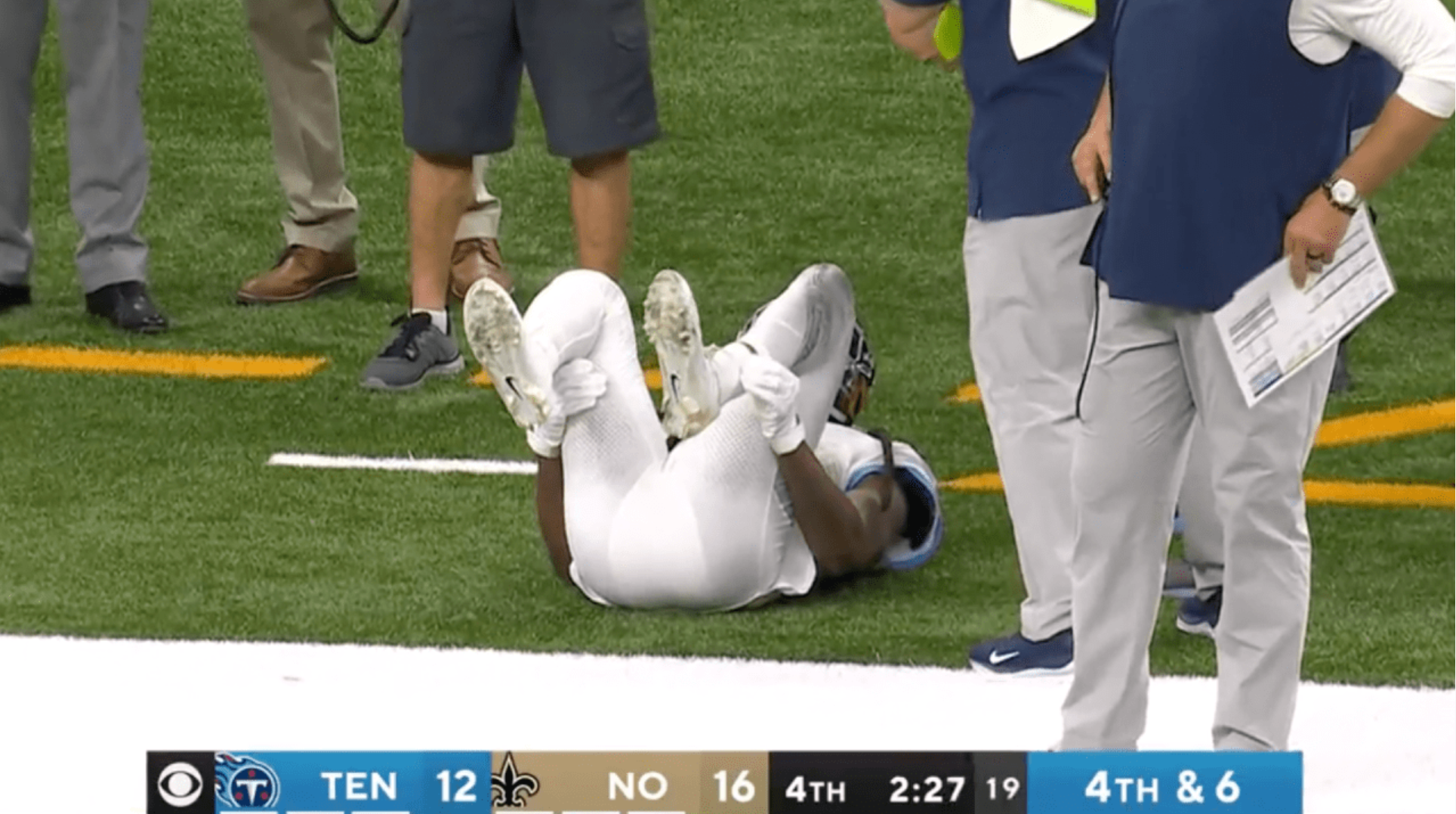 The Titans wide receiver had his ankle rolled up on while being tackled on Tennessee's last offensive play against the Saints. Ryan Tannehill completed a short pass to Hopkins for a gain of six yards, who then came off the field limping as the field goal unit went in.