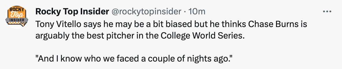 Vitello suggested that Vols right hander Chase Burns is the best pitcher in the College World Series.