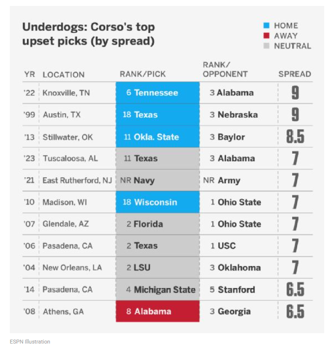 That pick was particularly memorable, because it is tied for the biggest underdog headgear pick that hit in his over 30 years making picks on the show, according to ESPN.com.