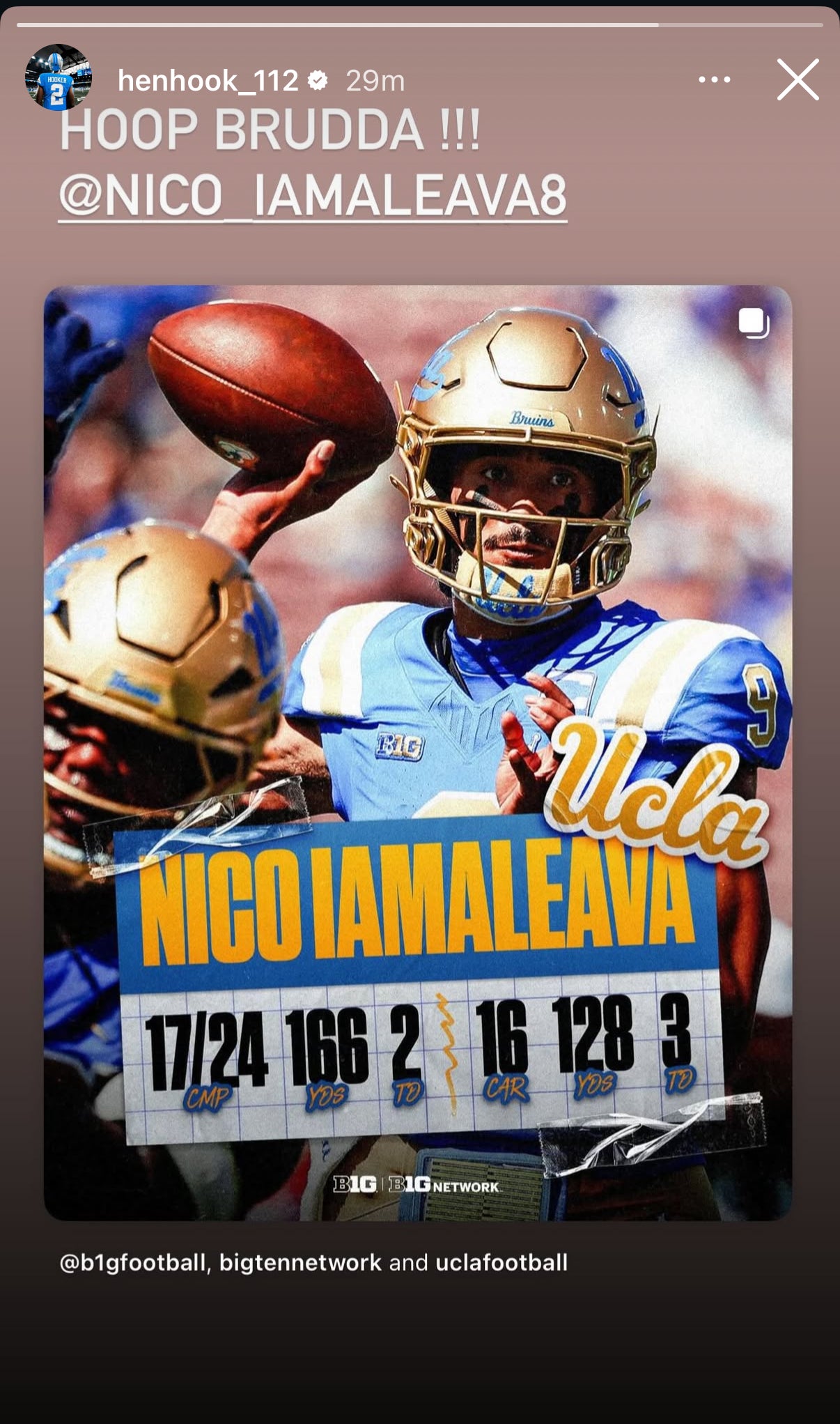 “Hoop Brudda!!!” wrote Hooker on a post that showed Iamaleava’s stats from the win.