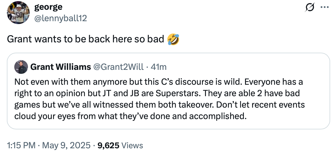 "Not even with them anymore, but this [Celtics] discourse is wild," tweeted Williams. "Everyone has a right to an opinion but [Jayson Tatum] and [Jaylen Brown] are superstars. They are able [to] have bad games, but we’ve all witnessed them both takeover (games). Don’t let recent events cloud your eyes from what they’ve done and accomplished."