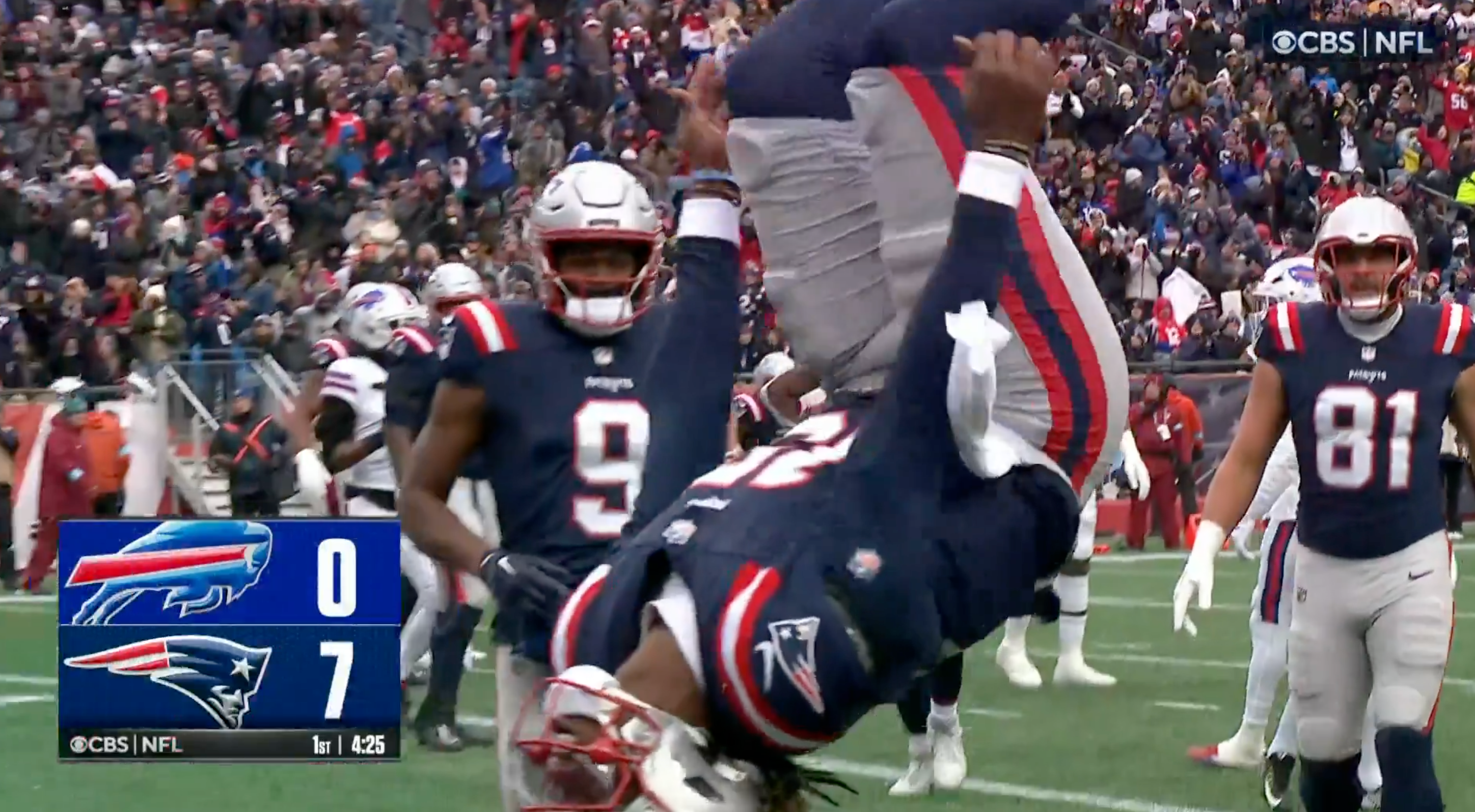 Former Vols QB Joe Milton caps off his first NFL touchdown in the perfect way during Patriots' Week 18 game against Bills