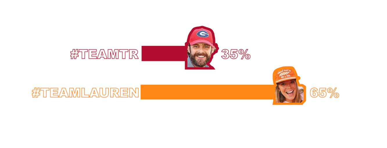 Lauren is a Vols fan who attended UT while Rhett, who is from Georgia, is a huge Bulldogs fan.
