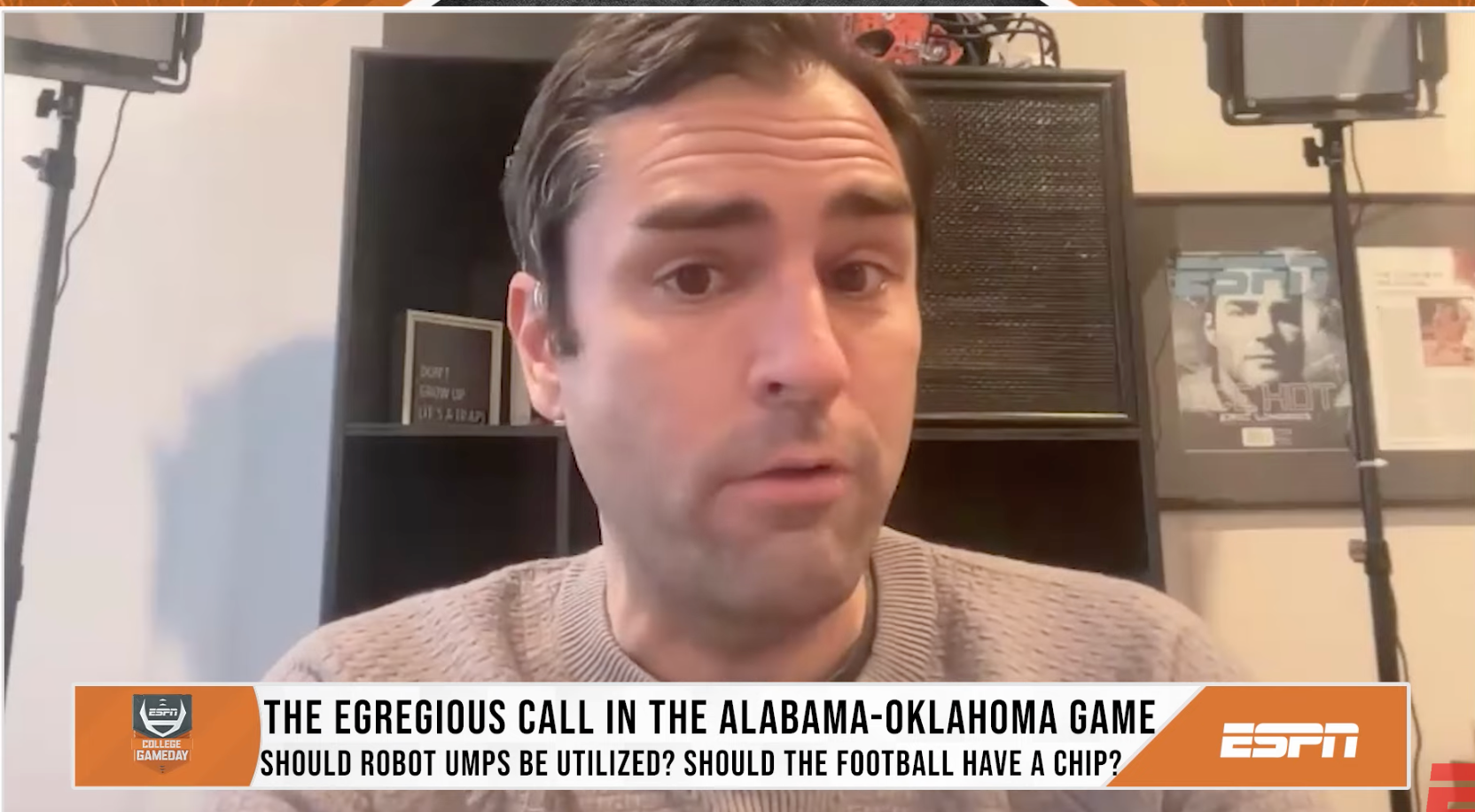 ESPN's popular College GameDay podcast with Rece Davis, Ryan McGee, and Pete Thamel, devoted an eight minute segment this week to "the egregious call in the Alabama-Oklahoma game".