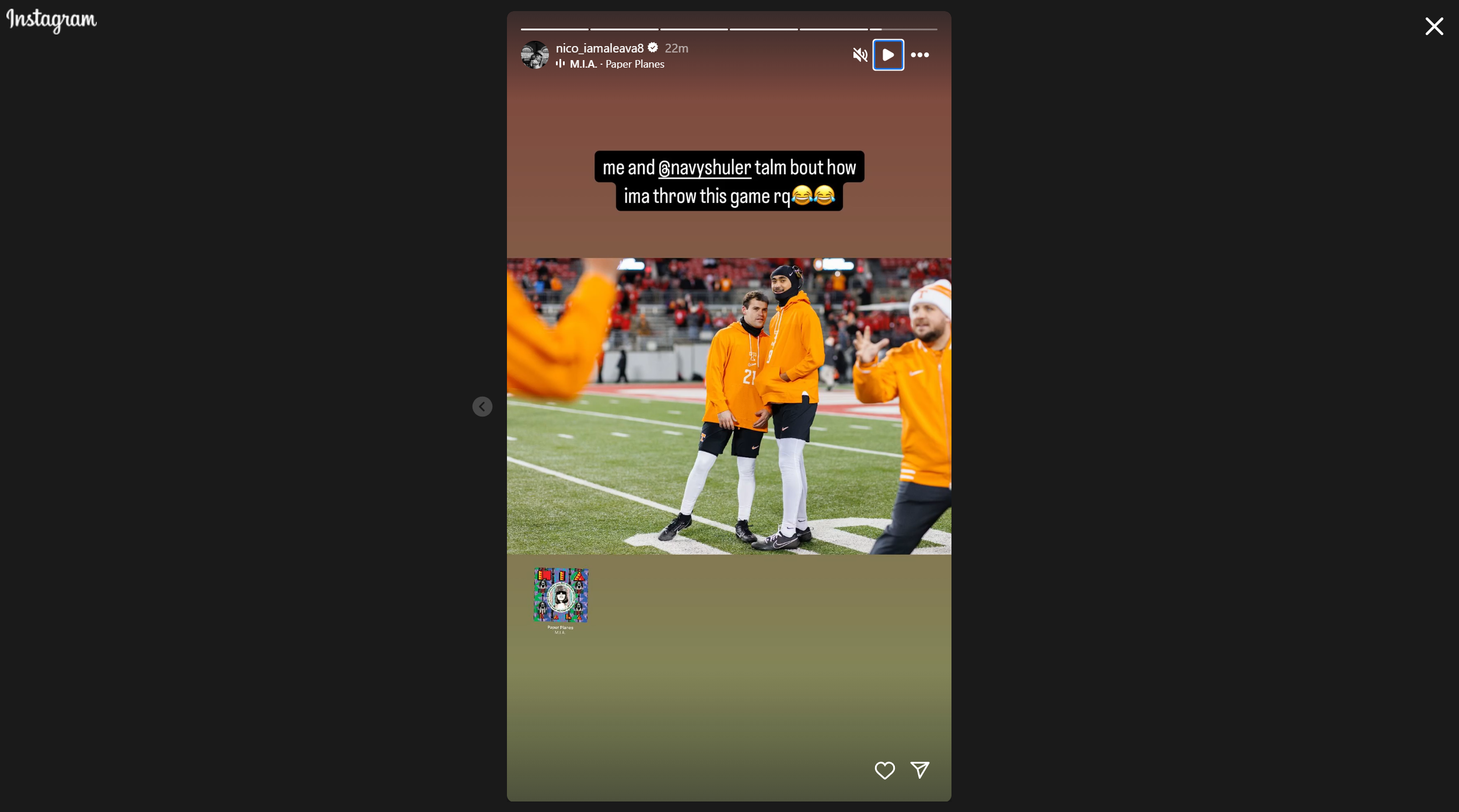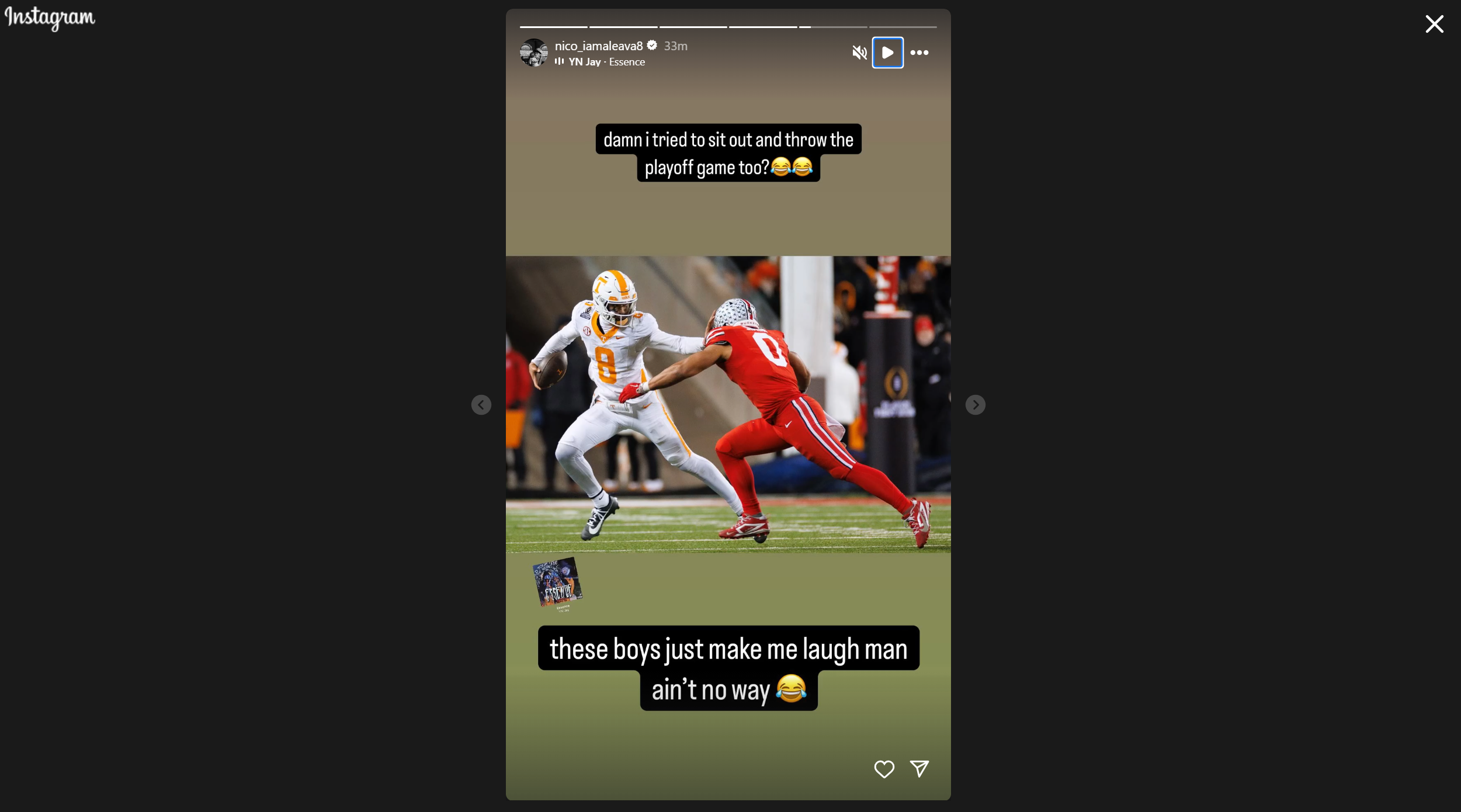 Iamaleava weighed in on Saturday, stating on his Instagram account, "damn i [sic] tried to sit out and throw the playoff game too?" followed by two laughing emojis. He also made a subsequent post joking about telling former Vols QB Navy Shuler that he was throwing the game with more laughing emojis.