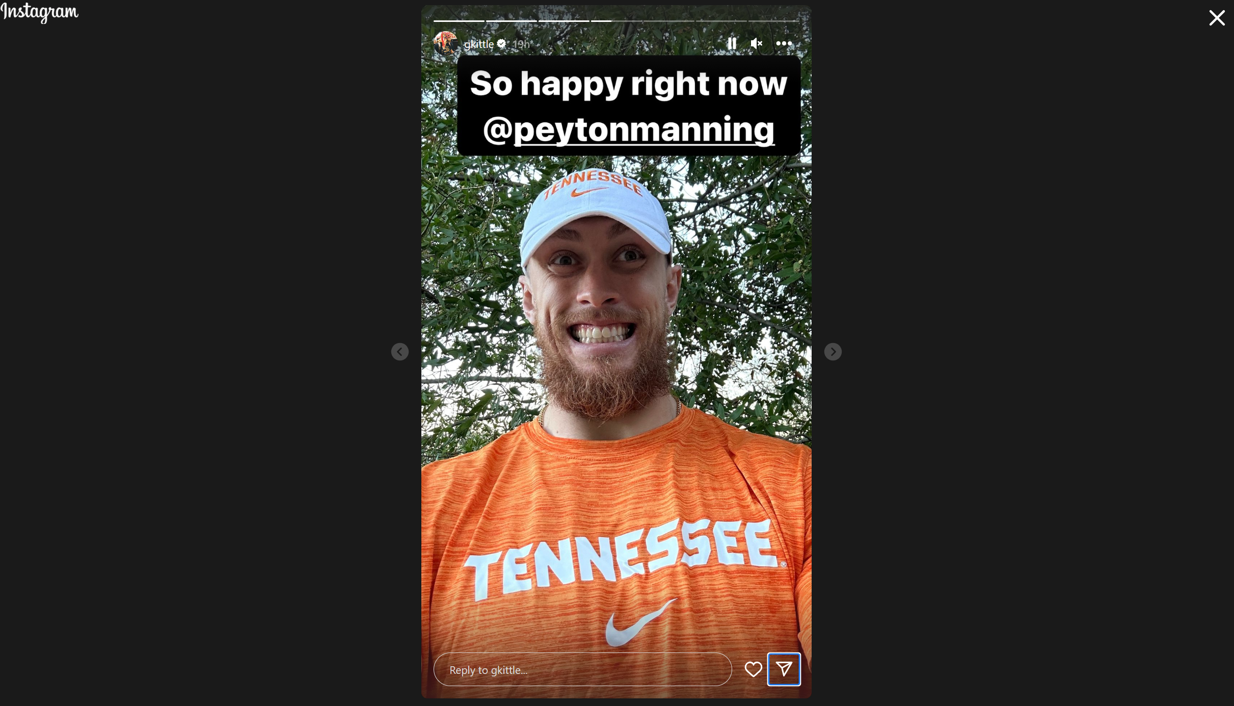 As it turns out, those weren't the only Iowa Hawkeyes affected by the young quarterback's strong play.  Former Iowa tight end and current San Francisco 49ers superstar George Kittle put up a post on his Instagram page in Vols gear with a note for Peyton Manning.