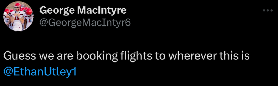 MacIntyre replied to the tweet, while tagging four-star defensive line Vols commit Ethan Utley, saying "we are booking flights to wherever this is".