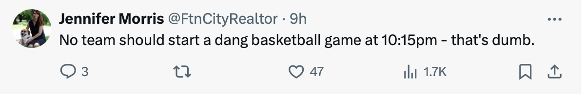 That means Tennessee likely won't play until 10:15 PM ET at the earliest. And fans are understandably not happy about the late tip off time.