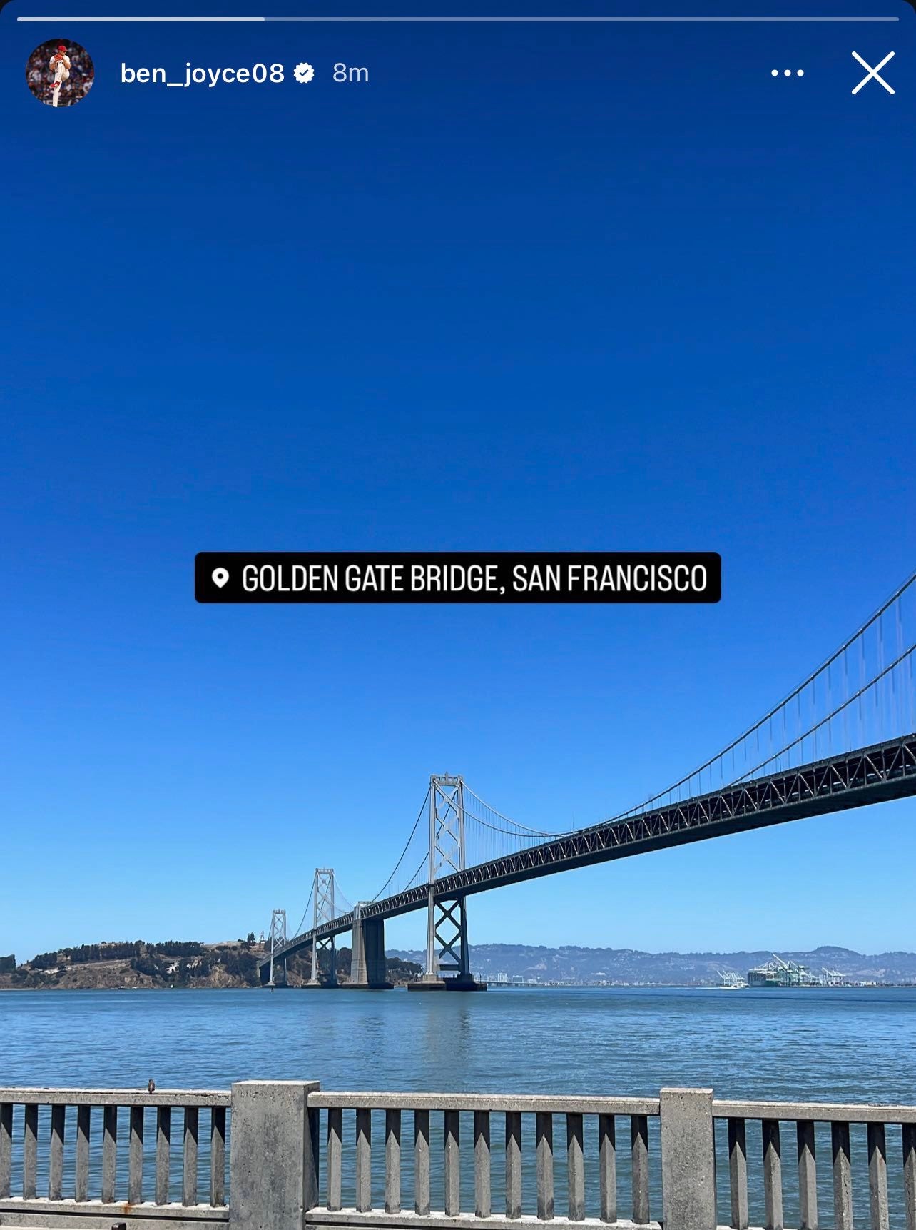 Joyce posted a picture of a bridge on his Instagram story earlier in the week, and he thought it was the Golden Gate Bridge in San Francisco. He was incorrect. That bridge was actually the Bay Bridge.