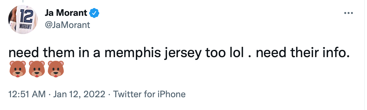 Morant later tweeted that he wants to find the kid's info and send him a Grizzlies jersey.