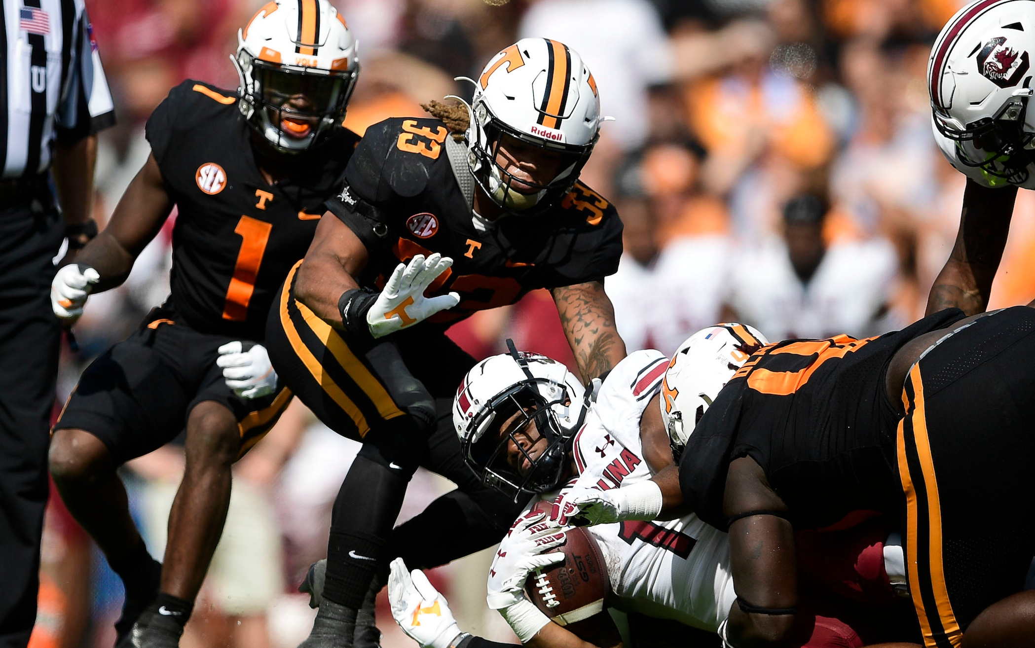 The Vols had the No. 7 scoring offense in the nation this season and the No. 90 scoring defense. The Gamecocks had the No. 104 scoring offense and the No. 46 scoring defense (South Carolina gave up 24 points per game compared to Tennessee's 29 points per game. The difference is a product of UT's up-tempo offense, which gives opposing offenses more scoring chances — even when Tennessee's offense is operating efficiently because they score so fast.)