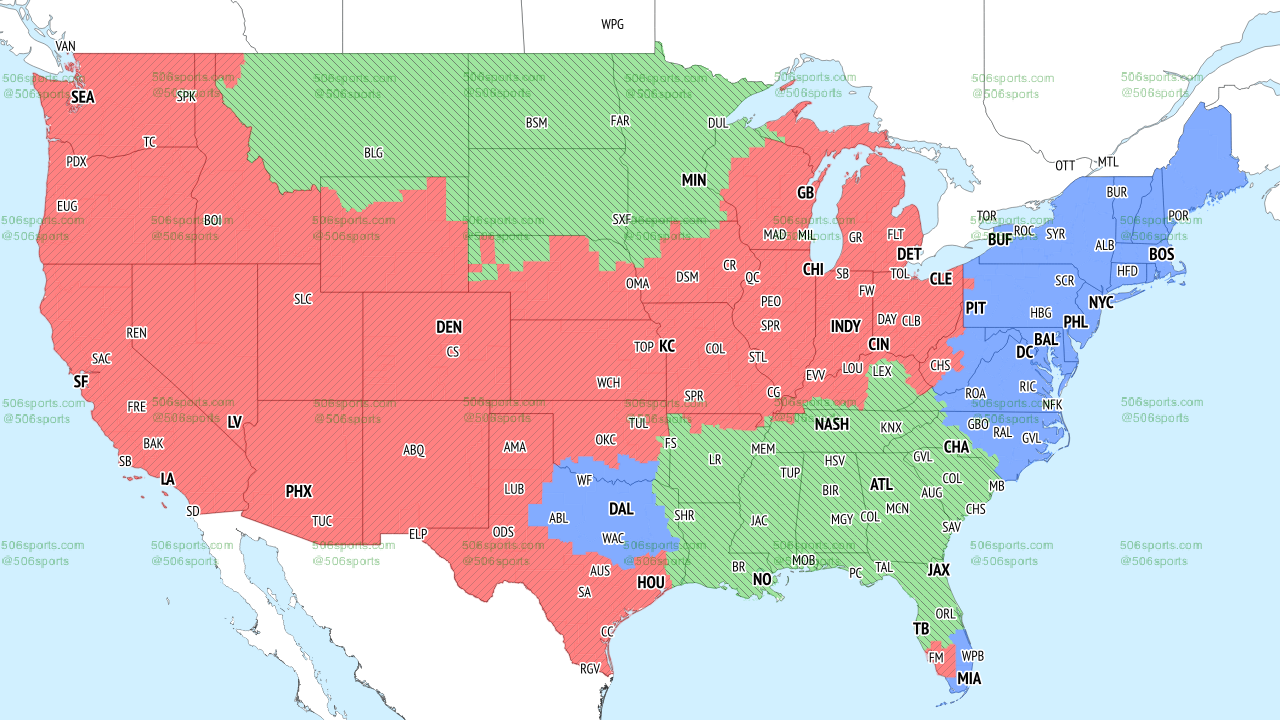 Will you be able to watch this week's game on TV? If you live in the green areas on the map below you’ll get this game on your local FOX channels, according to 506sports.com: