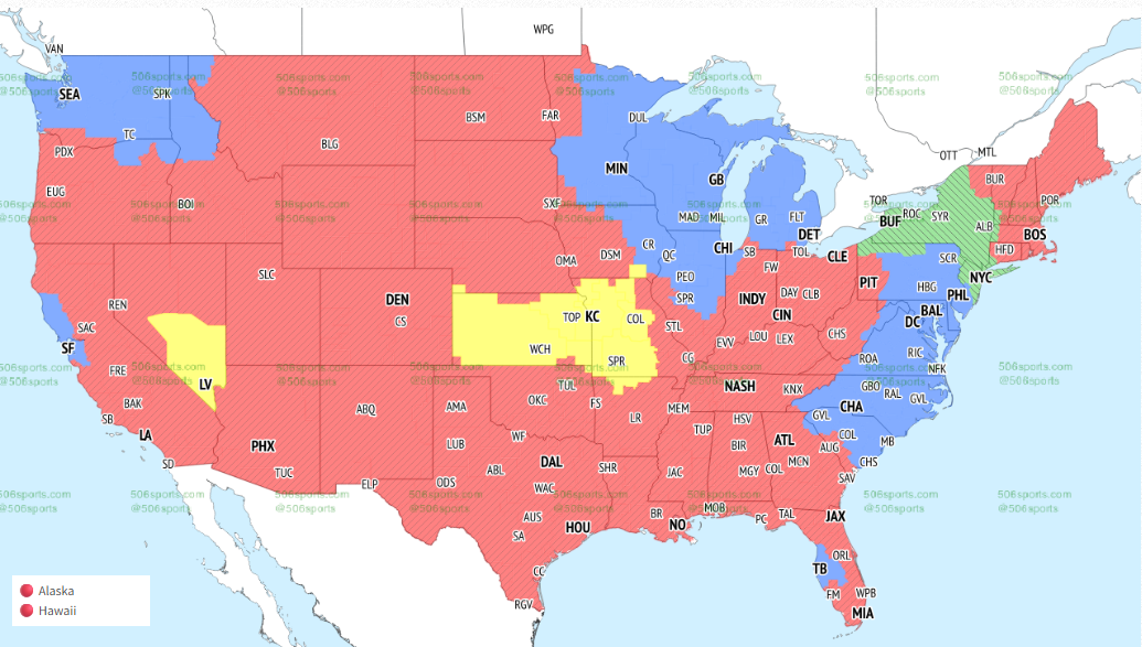 Will you be able to watch the game? 506sports.com released a broadcast map showing where across the country you’ll be able to tune in to watch the Bills game, and what games are showing in what areas.