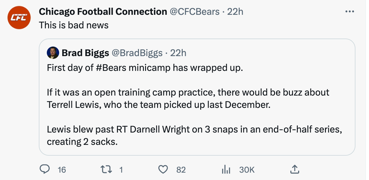 That tweet led to a litany of frustrated responses from Bears fans that are already expressing concern about Wright.