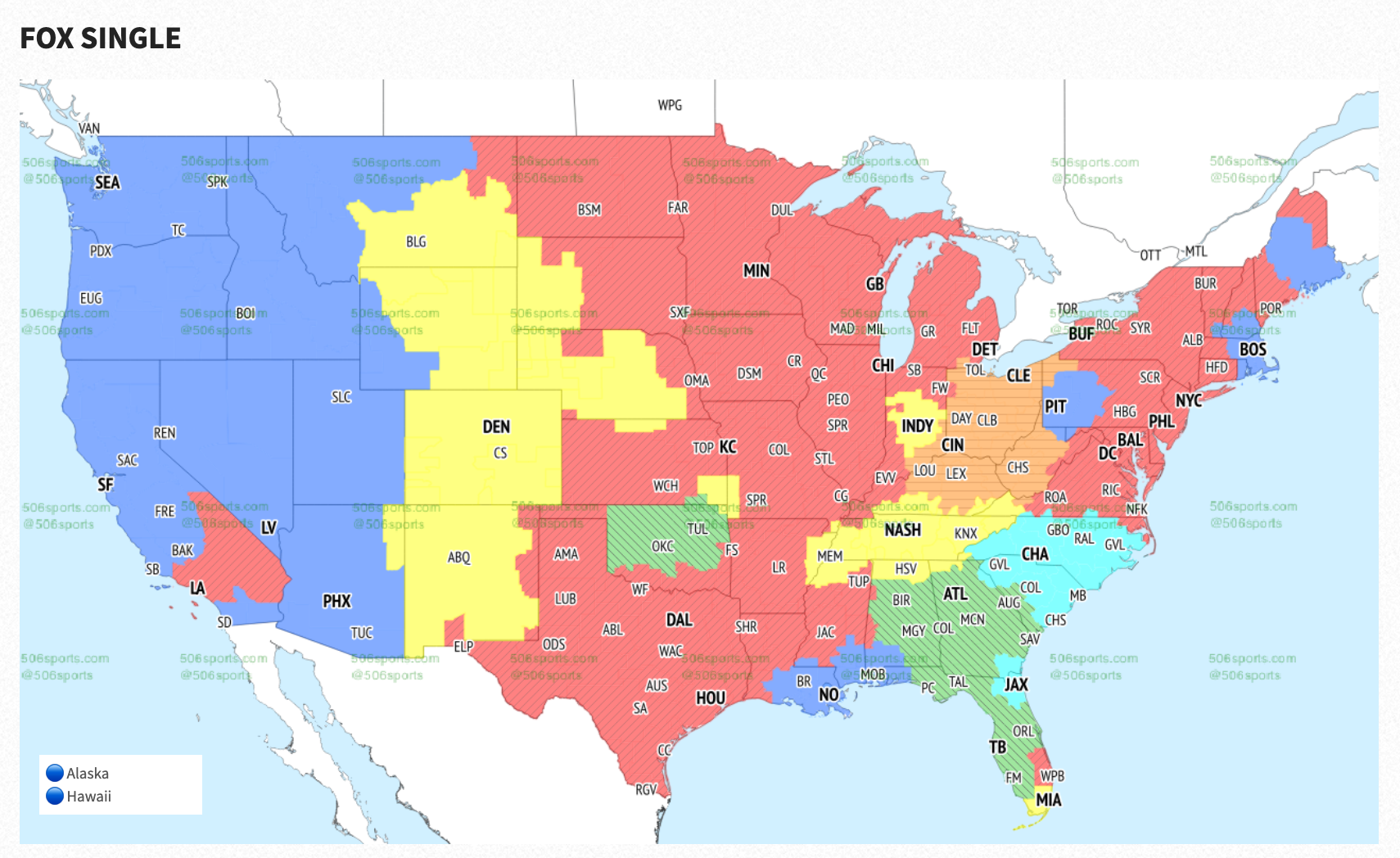 Will you be able to watch the Bengals play the Browns on Sunday? If you live in the orange areas on the map below, you’ll get this game on your local FOX channel at 1:00pm ET, according to 506sports.com.