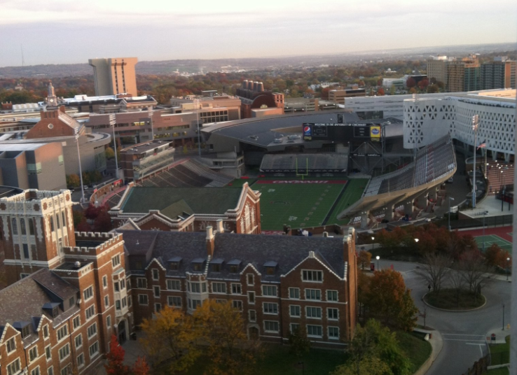 "Notice all the people on the field doing whatever they want," said Mitsch of another picture in which there are over a dozen people on the field. Nippert Stadium's exposure is overwhelmingly noted by UC students.