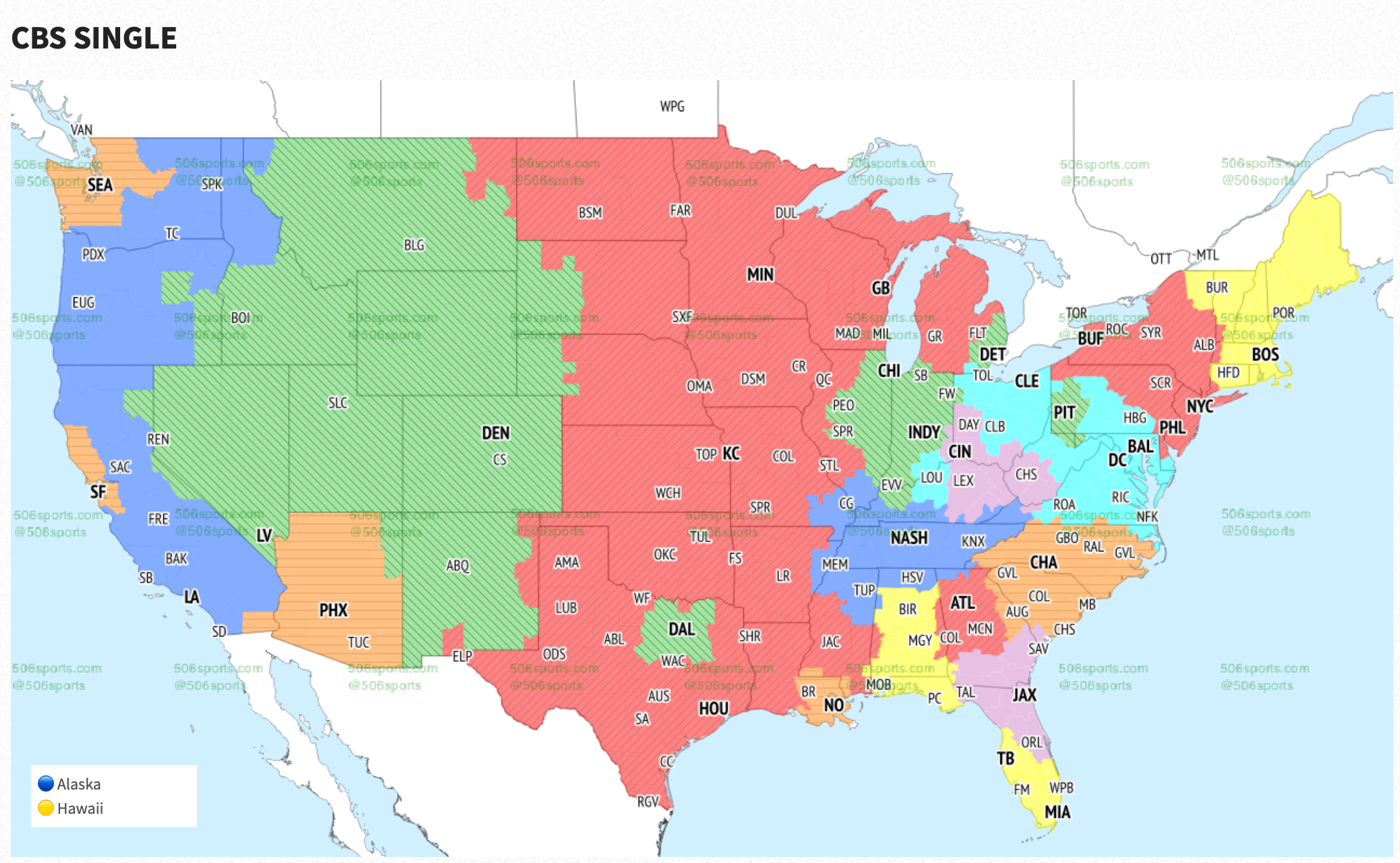 Will you be able to watch the Bengals play the Jaguars on Sunday? If you live in the light purple areas on the map below, you’ll get this game on your local CBS channel at 1:00pm ET, according to 506sports.com.