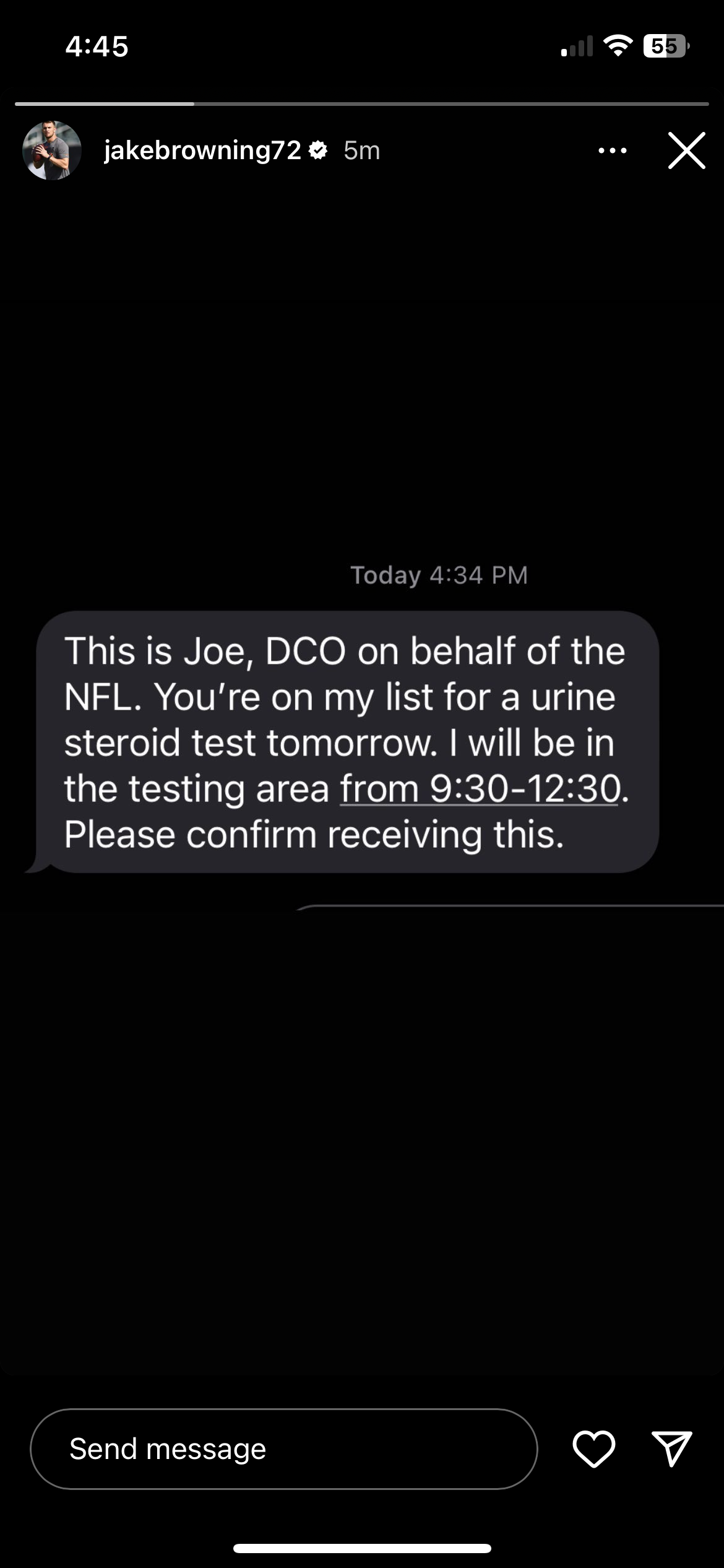 Following Cincinnati's 27-24 win over the Minnesota Vikings, Browning received a text message saying he's to be drug tested on Sunday. Browning posted the text to his Instagram story.