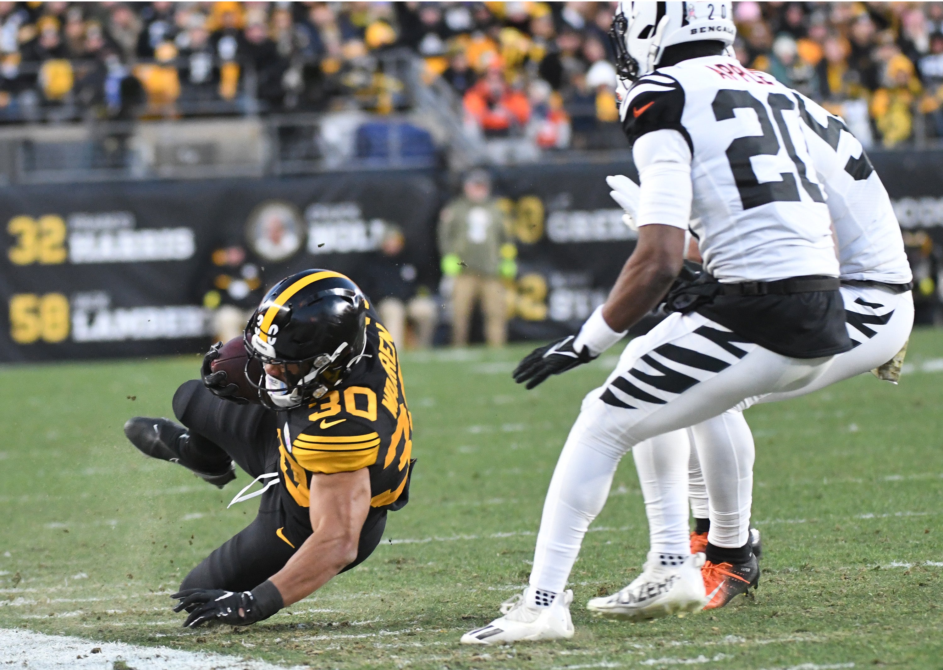 Warren is tough to catch up to and take down in space, regardless of who's calling the plays. Cincinnati needs to always have eyes on him when the ball comes his way to keep small plays from becoming big.