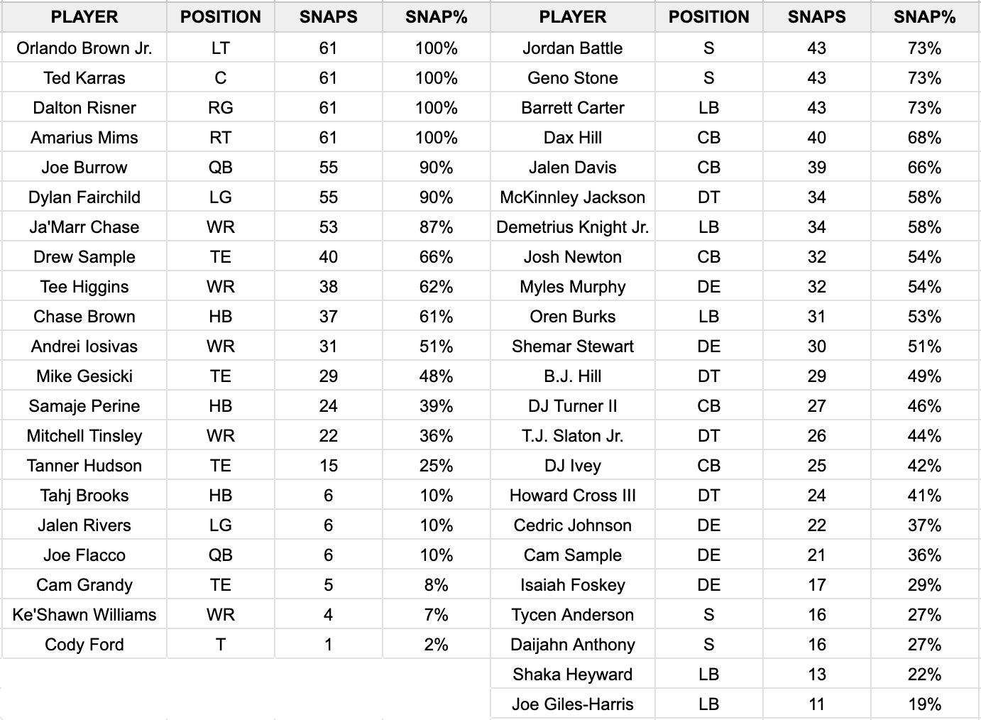 Let’s see what the snap counts had to say about the Bengals’ win over the Dolphins.