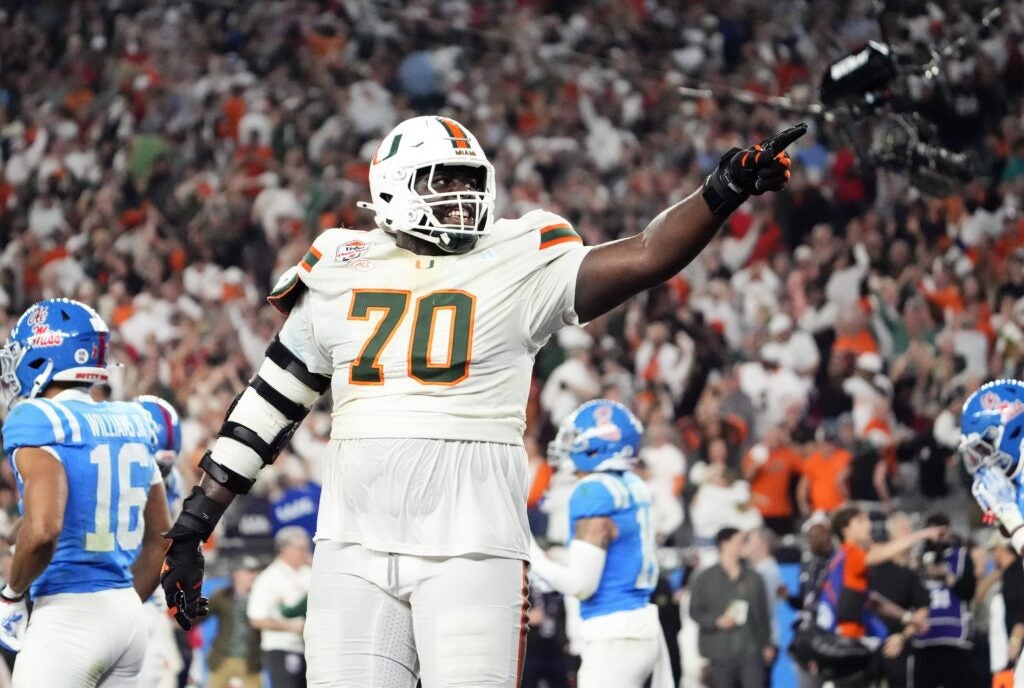 I had Michigan LB/EDGE Jaishawn Barham in this spot for Monday’s final mock, but I’m pivoting to Markel Bell for a couple reasons. The run on offensive tackles did indeed occur during the first round with seven finding NFL homes. Adding long-term depth behind both Orlando Brown Jr. and Amarius Mims remains a major concern, and after Cody Ford’s pay cut, Cincinnati finding an upgrade before Day 3 is very much in play. Bell is the low-hanging fruit because he’s virtually the same size as Brown and Mims and was nearly unbeatable around the edge in pass protection for Miami.
