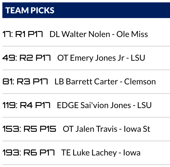 Jones, who came in for a 30 visit last week, checks boxes as a young three-year starting tackle at a major program who has the measurables to move inside to guard, the position attached to his four-star high school recruitment profile. I think there will be superior options available to them. I don't quite trust them to know that.